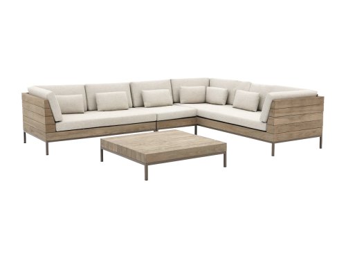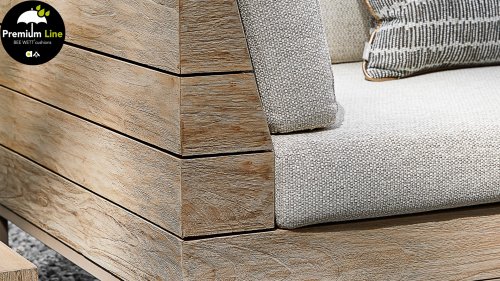 Das Applebee Long Island Lounge Set ist modular aufgebaut. Geeignet für große und kleine Aufstellungen. Das Teakholz ist mit einer küstennahen Farbbeschichtung versehen. Die klaren Linien sind charakteristisch für das Erscheinungsbild der Möbel. Der grob gewebte Stoff verleiht dem Set ein luxuriöses Ambiente.