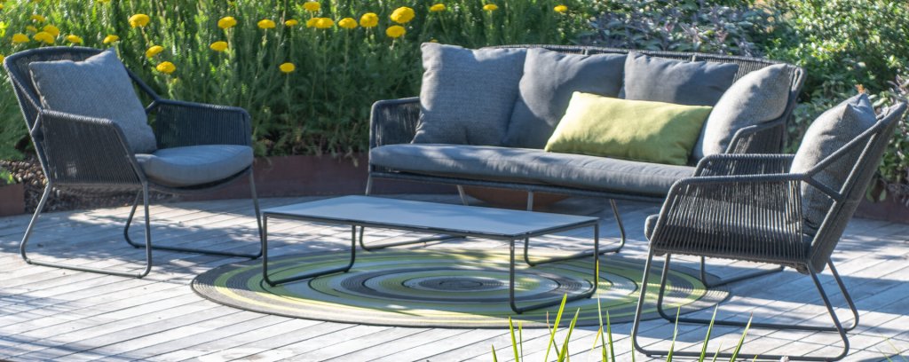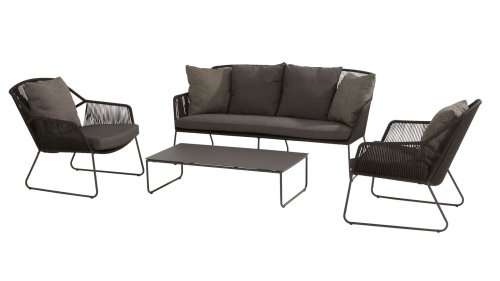 Het 4 Seasons Accor frame is omvlochten is met antraciet gekleurd synthetische wicker in de vorm van touw (Rope). De kussens zijn uitgevoerd in een prachtige antraciet kleurige Olefin stof. Door de veerkracht van het Rope materiaal en de dikke kussens ontstaat een subliem zit-comfort! De kussens hebben een Olefin hoes welke af te ritsen is en uit te wassen op 30 graden. Deze stof is zeer weerbestendig en duurzaam.
