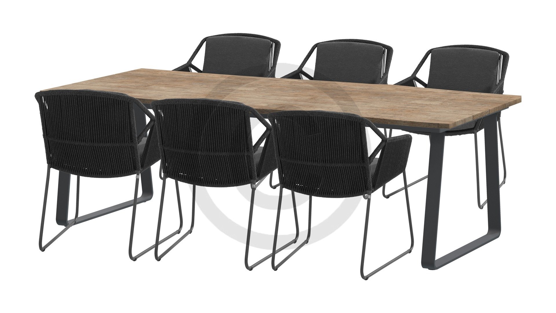1 x 4 Seasons Outdoor Konos-Robusto tafel 220x95cm Alu antraciet-Teak
