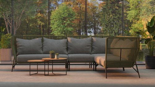 De 4 Seasons Outdoor Altoro lounge is nieuwe serie in de 2021 collectie van 4 Seasons Outdoor. De loungeset heeft zijn eigen unieke uitstraling. De 4SO modulair Altoro loungeset heeft door zijn extra hoge rugleuning een mooie uitstraling en het geeft een geborgen en cosy gevoel. De Altoro loungeset is afgewerkt met groen rope, wat een schitterend contrast geeft met het donker antraciete frame en kussens. De Altoro hoekbank is modulair en daardoor groter en kleiner te maken door middel van de tussenmodule of centerdeel.