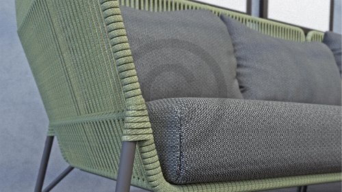 Er is gekozen voor een mooie zachte groene kleur rope. Dit is een echte zachte kleur en helemaal volgends de laatste trends. Hierdoor past de set in elk soort tuin. Het rope is zo gemaakt zodat het altijd buiten kan blijven staan. Vuil blijft er niet op zitten of is gemakkelijk weg te vegen. Het frame van de Altore loungeset is gemaakt van gepoedercoat aluminium. Hierdoor is het frame geschikt om het gehele jaar door buiten te laten staan. De kussens van de Altore loungeset zijn van de stof olefin gemaakt. Deze stof is all weather. De kussens kunnen dus buiten blijven liggen in de regen. Het water trekt er niet direct in maar worden wel nat, dit heeft enige droogtijd nodig.
