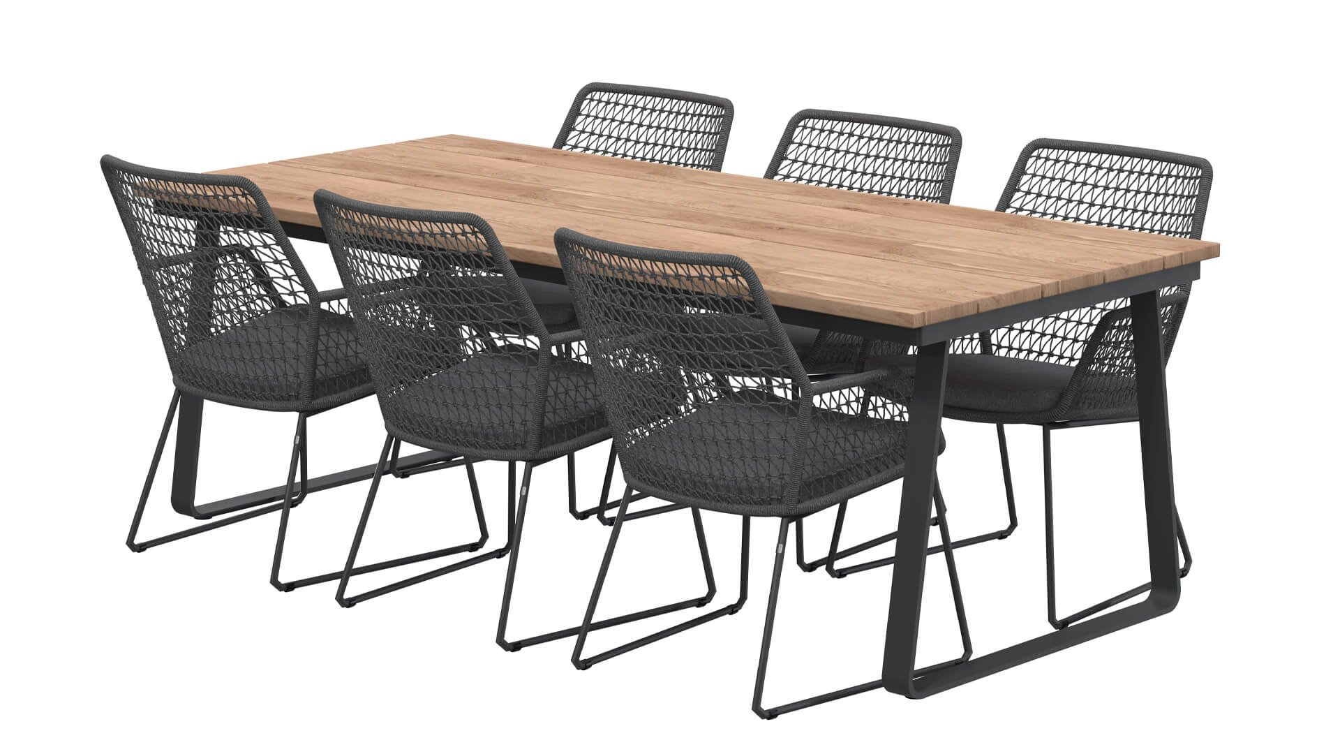 1 x 4 Seasons Outdoor Konos tafel 220x95cm Teak-Alu Antraciet
