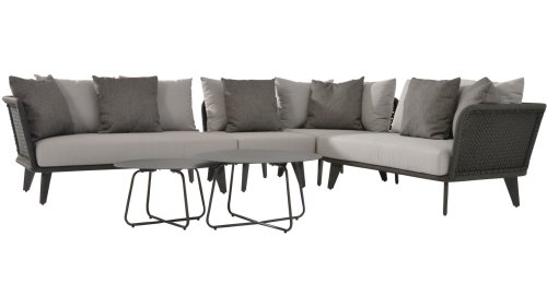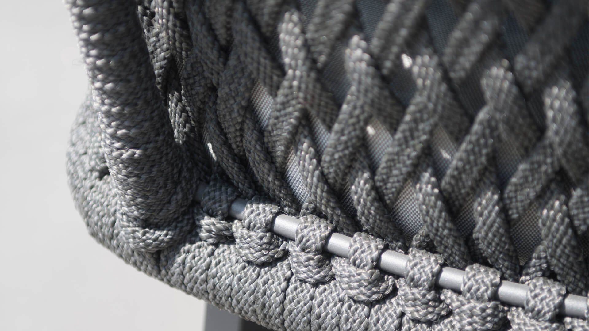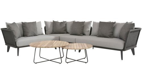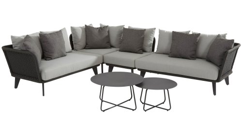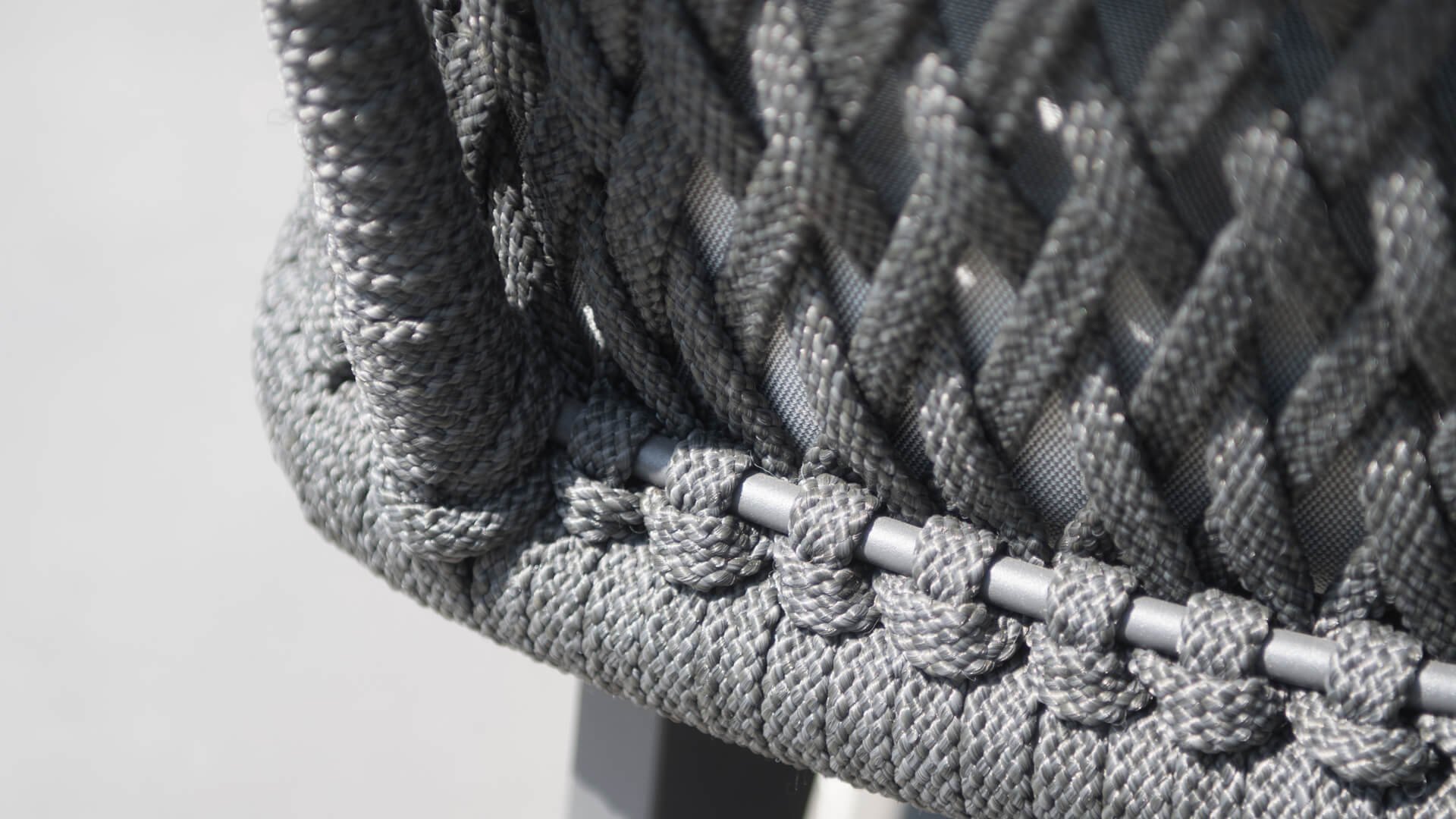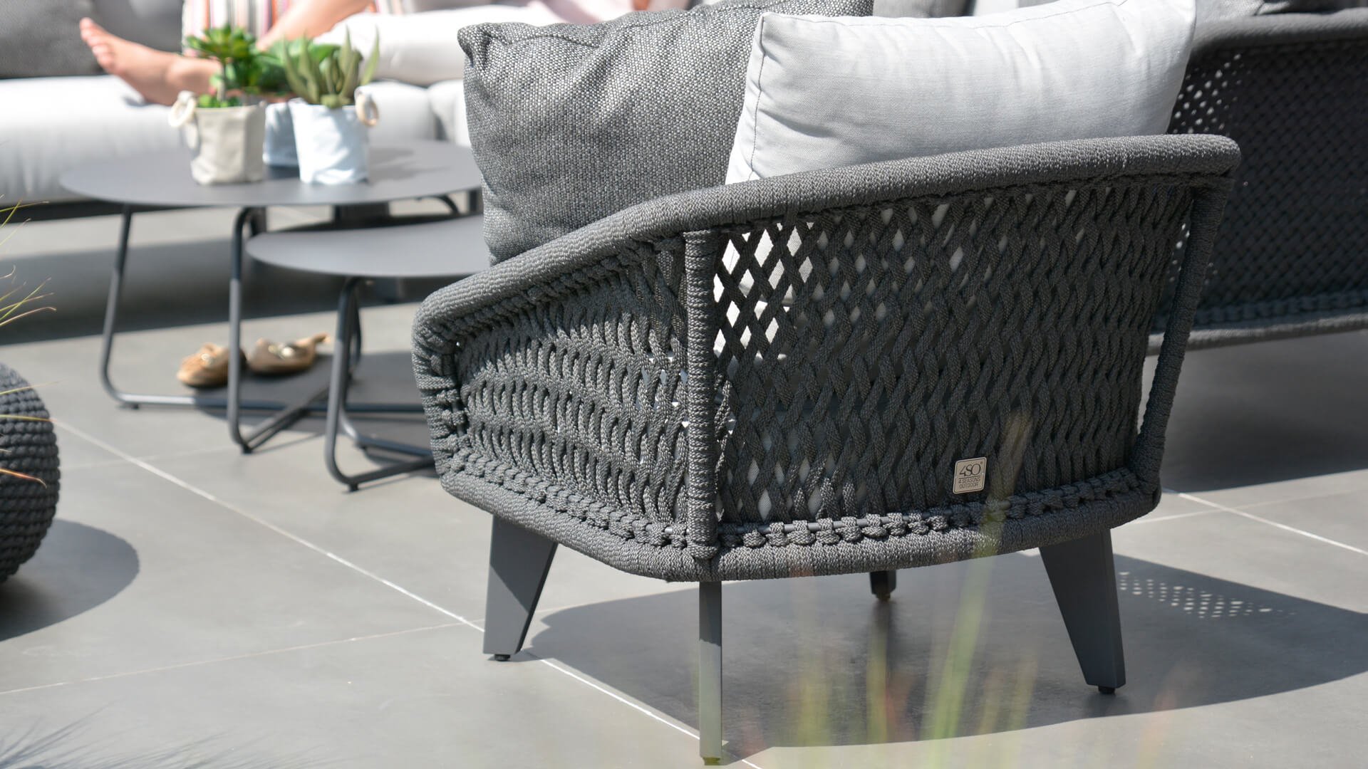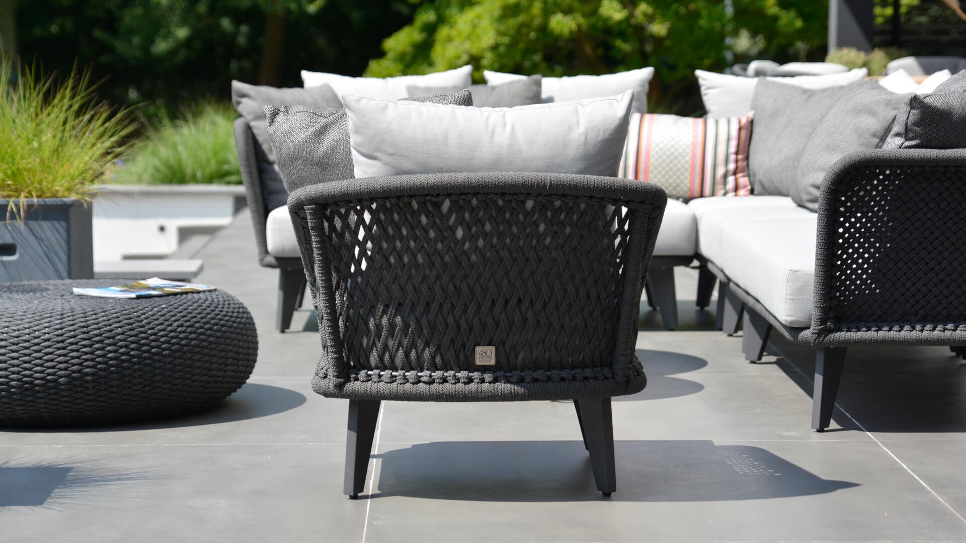 Het aluminium frame garandeert een lange zorgeloze levensduur. De afwerking met robuuste aluminium poten in combinatie met de antraciet gekleurde rope draad en de antraciet en licht grijs gekleurde kussens zorgen voor een harmonieuze rustieke sfeer die perfect in iedere tuin tot zijn recht komt.
