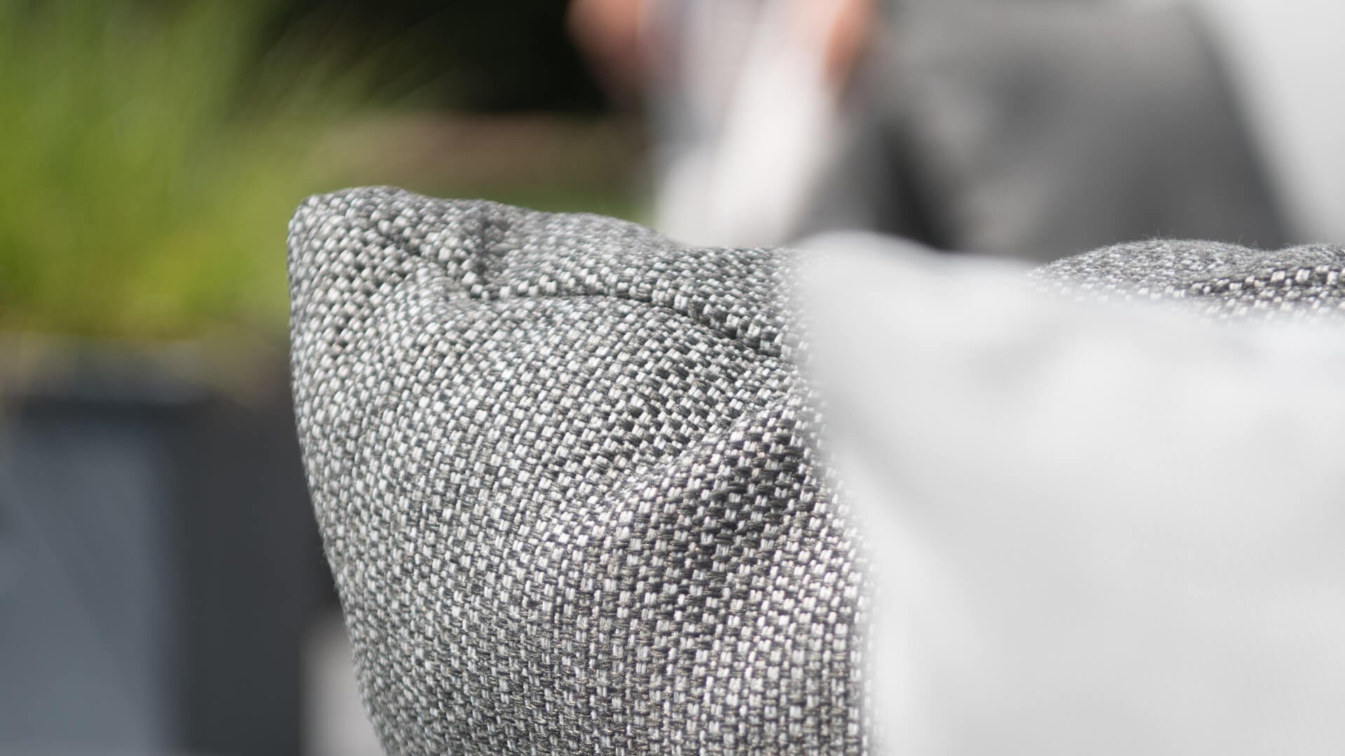 Het 4 Seasons Belize frame is omvlochten is met mid grey antraciet synthetische wicker in de vorm van touw (Rope). De kussens zijn uitgevoerd in een prachtige grijs en antraciet kleurige Olefin stof. Door de veerkracht van het Rope materiaal en de dikke kussens ontstaat een subliem zit-comfort! De kussens hebben een Olefin hoes welke af te ritsen is en uit te wassen op 30 graden. Deze stof is zeer weerbestendig en duurzaam.