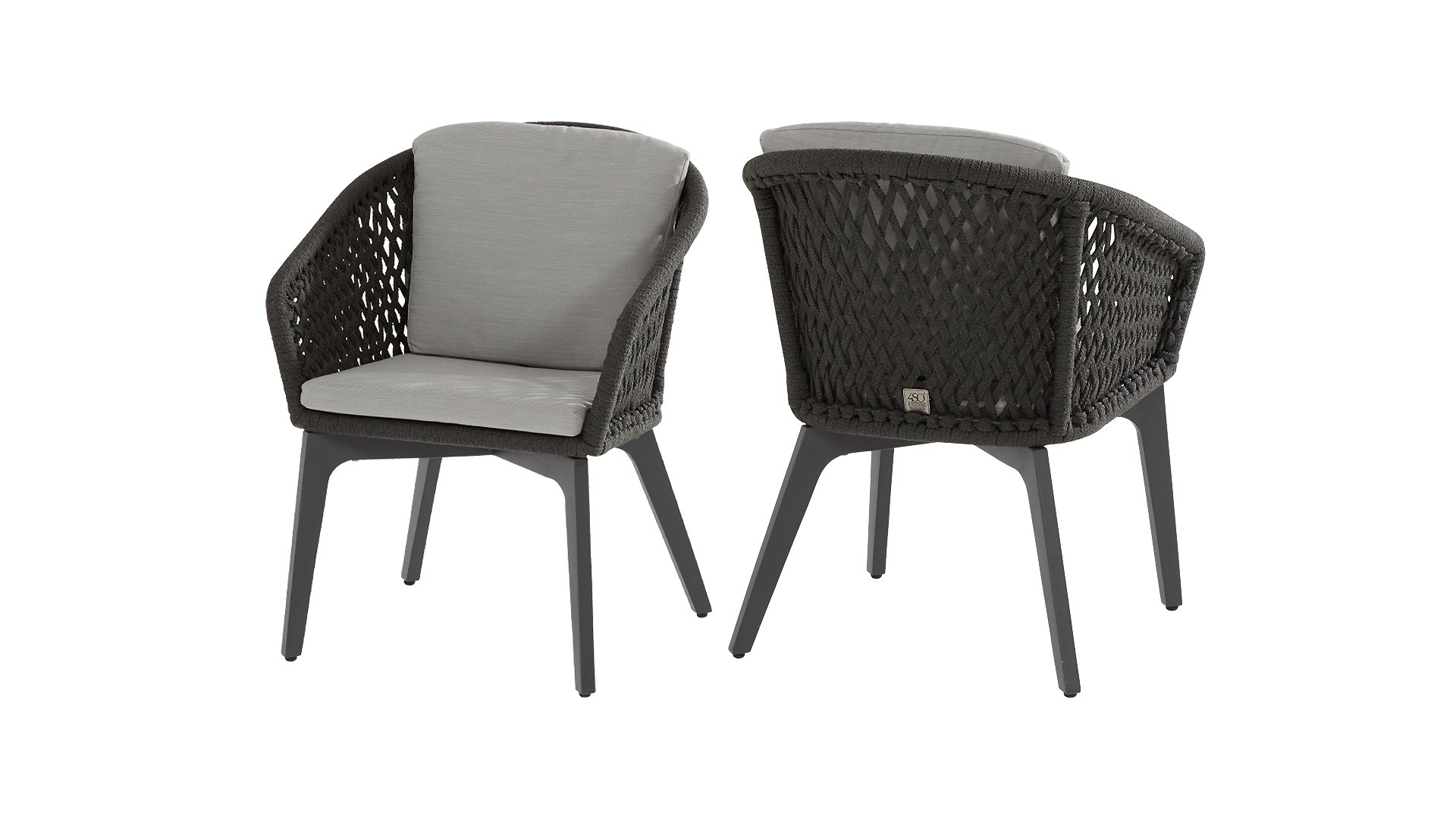 Het 4 Seasons Belize frame is omvlochten is met mid grey antraciet synthetische wicker in de vorm van touw (Rope). De kussens zijn uitgevoerd in een prachtige grijs en antraciet kleurige Olefin stof. Door de veerkracht van het Rope materiaal en de dikke kussens ontstaat een subliem zit-comfort! De kussens hebben een Olefin hoes welke af te ritsen is en uit te wassen op 30 graden. Deze stof is zeer weerbestendig en duurzaam.
