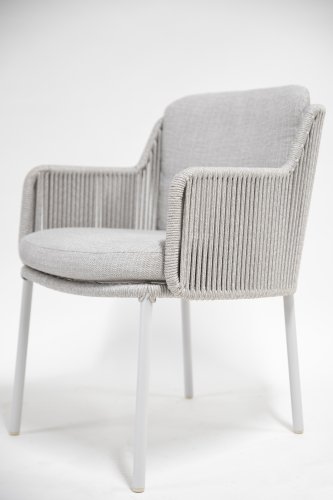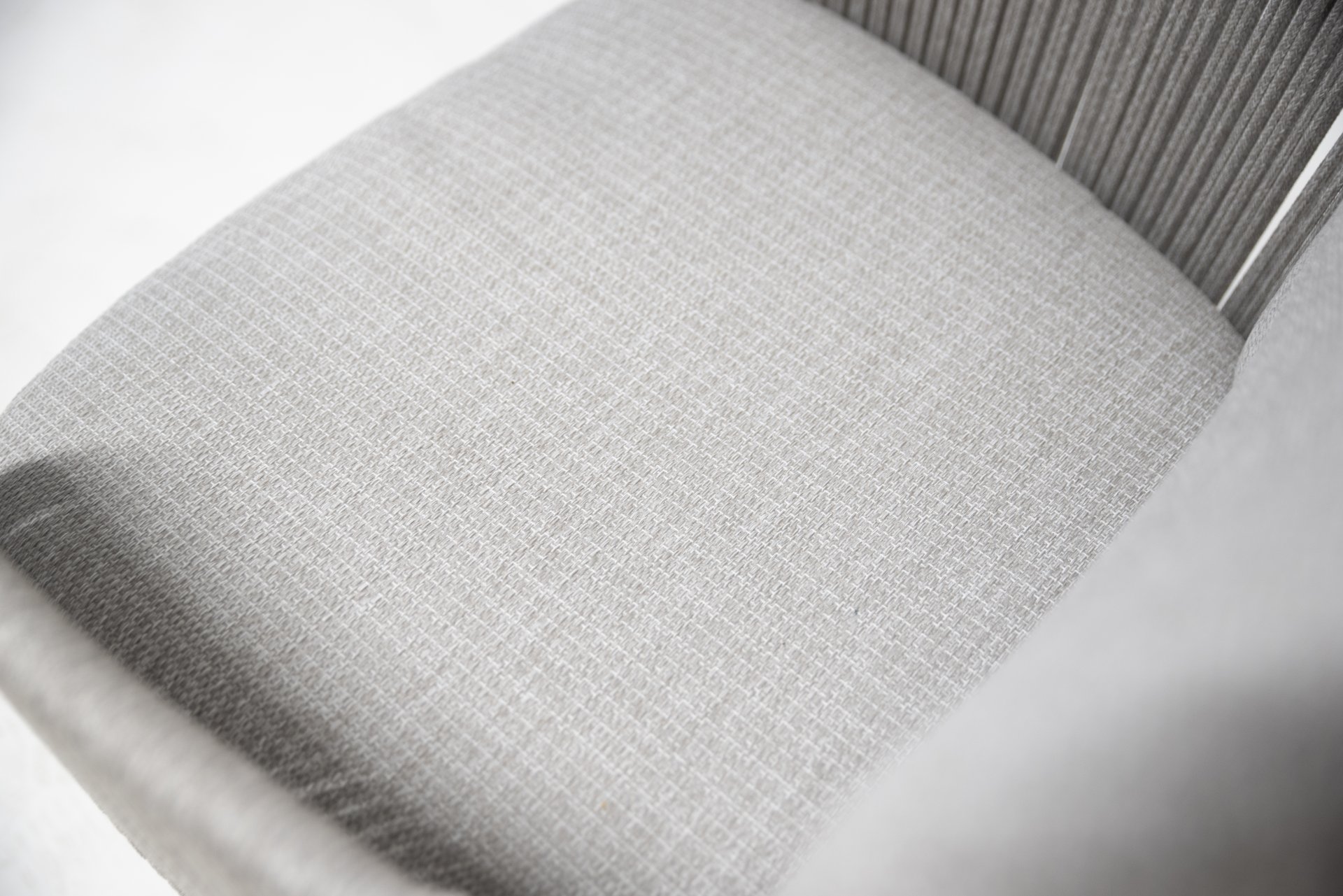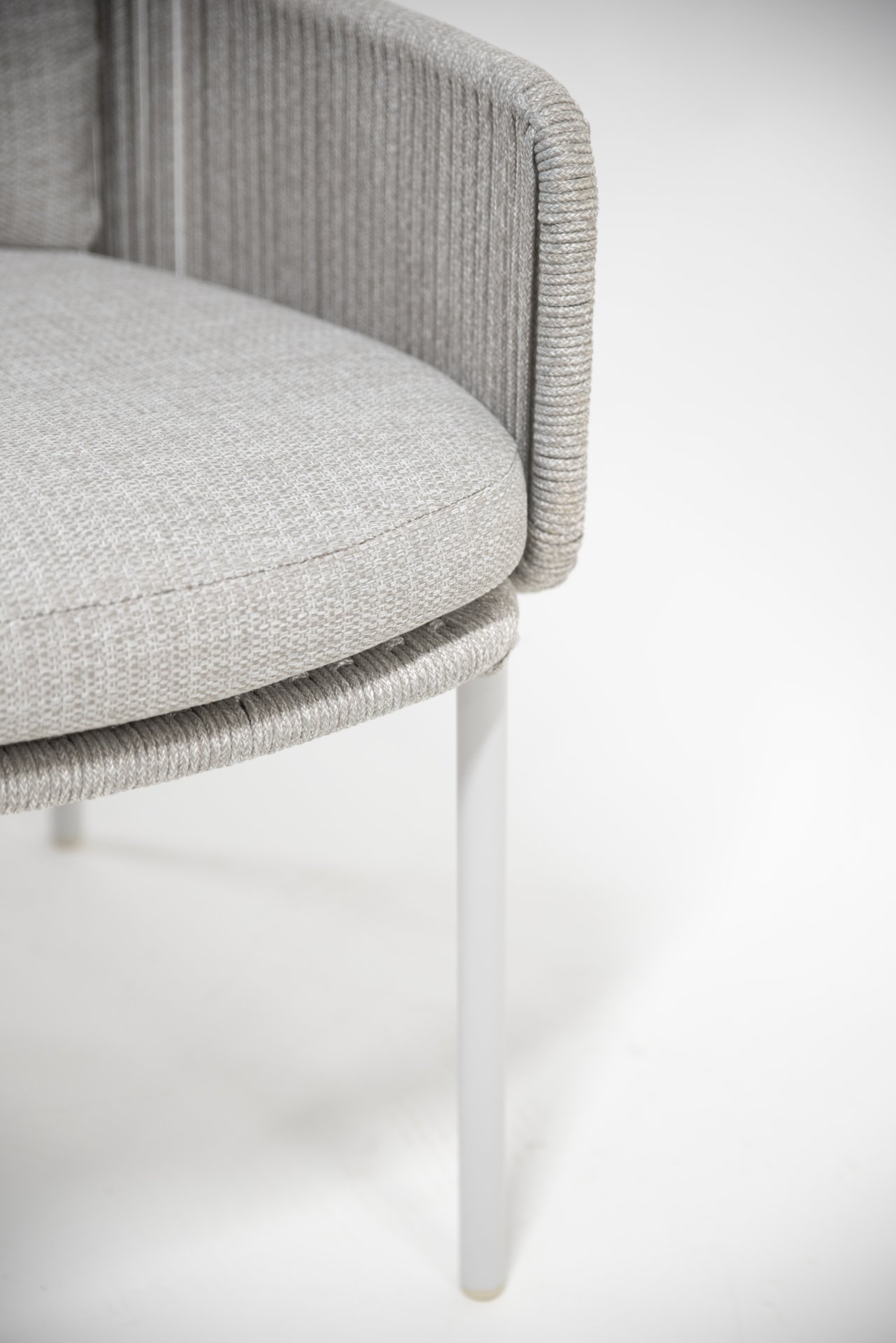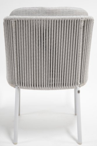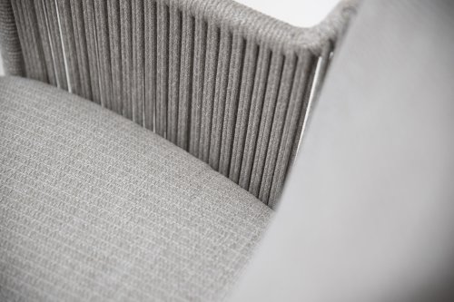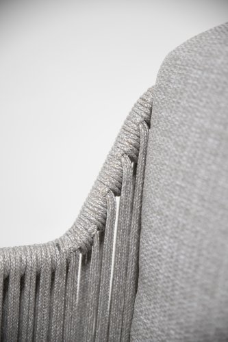 Bernini komt van het merk 4 Seasons Outdoor. Het frame is gemaakt van gepoedercoat aluminium. De stoel is voorzien van all weather touwen. Het Rope kan altijd buiten blijven staan zonder stof aan te trekken. Staat het kussen niet op de stoel, dan ziet de stoel er prachtig uit. Het zitkussen is licht grijs. Er is olefinestof gebruikt. Dit is een niet-vervagende stof. Deze stof is ook weerbestendig. De 4-seizoenen outdoor eetkamerstoel Bernini is een mooi gevormde stoel. De ronde vorm en het zachte kussen maken het tot een comfortabele stoel. Dit nieuwe product in de 4 Seasons Outdoor-serie is verkrijgbaar in twee kleuren: Frozen en Platinum. De Bernini tuinstoel zorgt voor een uitstekende ondersteuning van de rugleuning van de stoel, en is perfect te combineren met verschillende eettafels! Het merk 4 Seasons Outdoor produceert producten van de hoogste kwaliteit.