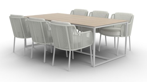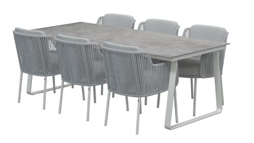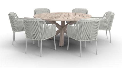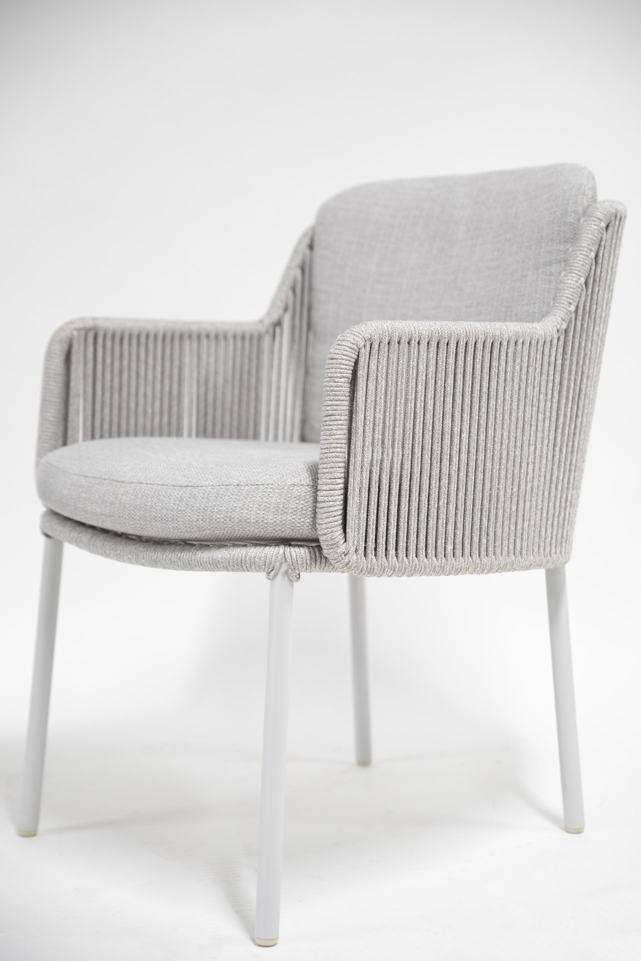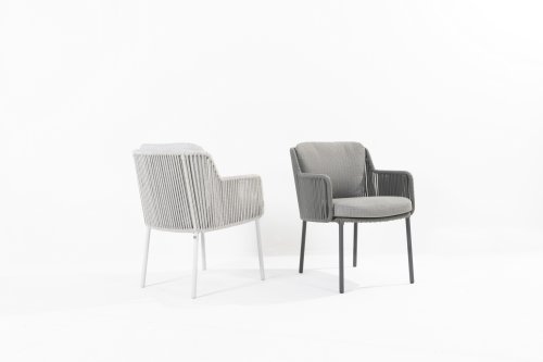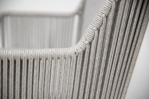 Het merk geeft ook een ruime garantieperiode! Op de Bernini eetkamerstoelen zit 5 jaar garantie. Het frame van de 4 Seasons outdoor Bernini eetkamerstoel is gemaakt van aluminium. Het Alu is gepoedercoat waardoor het niet roest. De rug en armleuningen zijn gemaakt van Rope. Ropeis een prachtig zacht materiaal met een moderne uitstraling. Het touw is zeer sterk, UV-bestendig en heeft een zeer lage trekkracht. Het touw kan ook weinig of geen vocht en vuil opnemen.