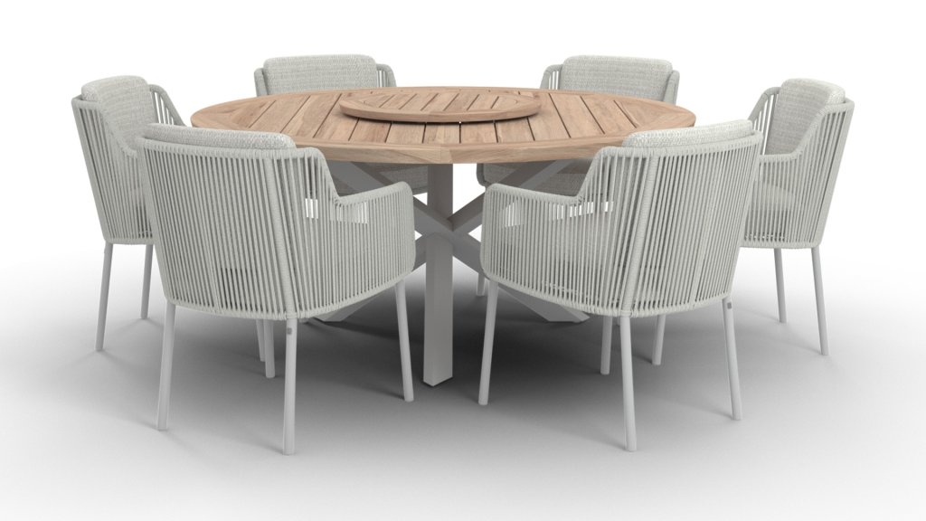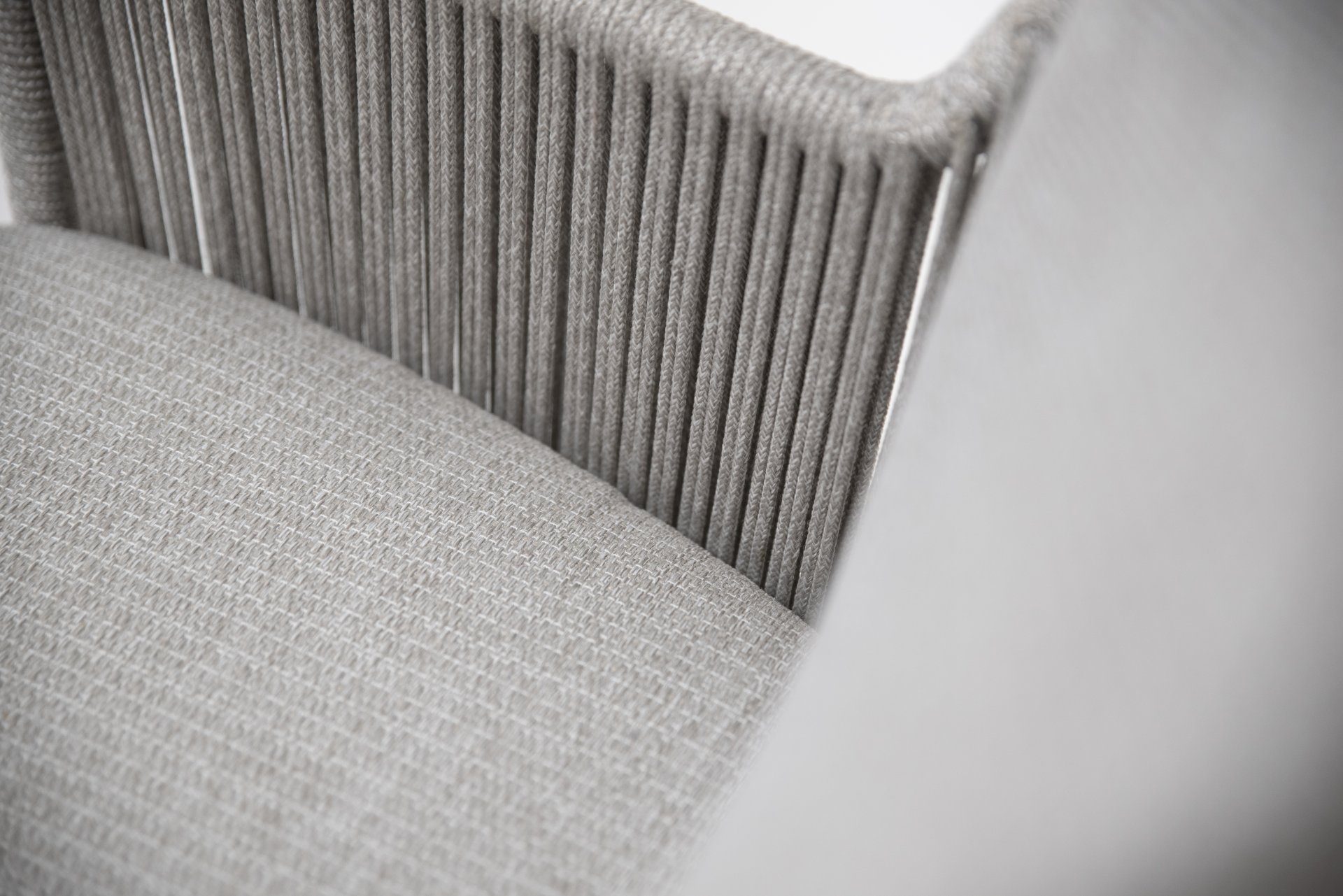 Het merk geeft ook een ruime garantieperiode! Op de Bernini eetkamerstoelen zit 5 jaar garantie. Het frame van de 4 Seasons outdoor Bernini eetkamerstoel is gemaakt van aluminium. Het Alu is gepoedercoat waardoor het niet roest. De rug en armleuningen zijn gemaakt van Rope. Ropeis een prachtig zacht materiaal met een moderne uitstraling. Het touw is zeer sterk, UV-bestendig en heeft een zeer lage trekkracht. Het touw kan ook weinig of geen vocht en vuil opnemen.