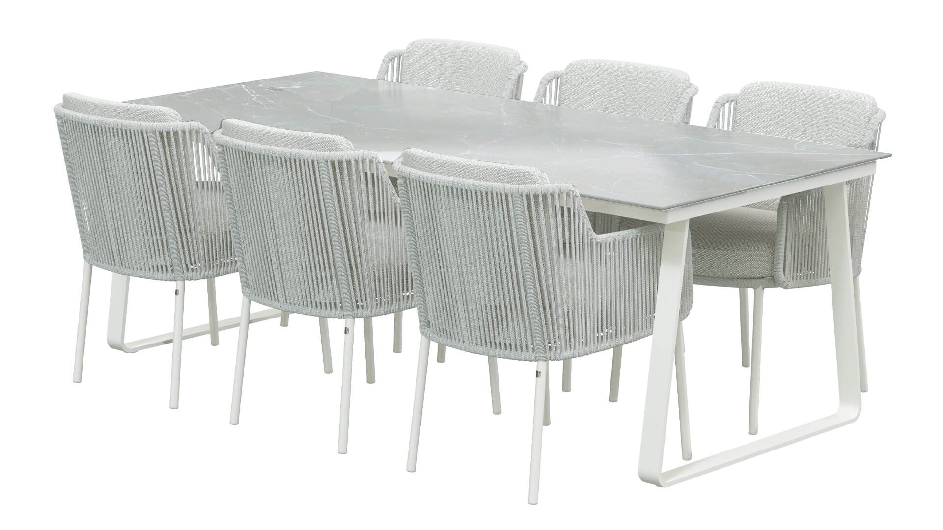 Het merk geeft ook een ruime garantieperiode! Op de Bernini eetkamerstoelen zit 5 jaar garantie. Het frame van de 4 Seasons outdoor Bernini eetkamerstoel is gemaakt van aluminium. Het Alu is gepoedercoat waardoor het niet roest. De rug en armleuningen zijn gemaakt van Rope. Ropeis een prachtig zacht materiaal met een moderne uitstraling. Het touw is zeer sterk, UV-bestendig en heeft een zeer lage trekkracht. Het touw kan ook weinig of geen vocht en vuil opnemen.