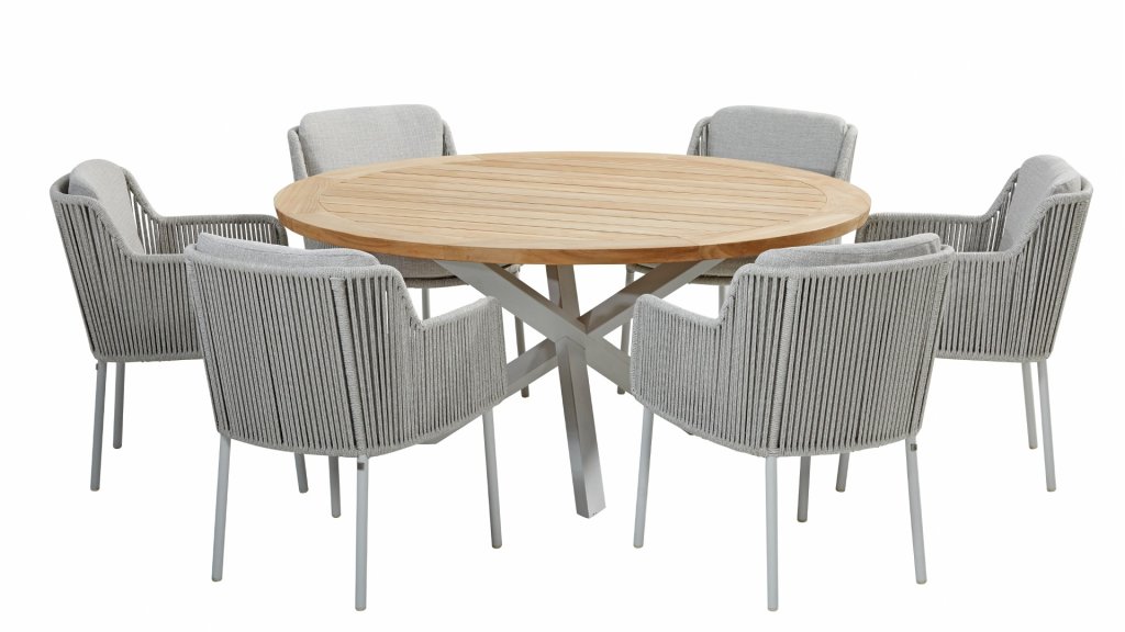 Het merk geeft ook een ruime garantieperiode! Op de Bernini eetkamerstoelen zit 5 jaar garantie. Het frame van de 4 Seasons outdoor Bernini eetkamerstoel is gemaakt van aluminium. Het Alu is gepoedercoat waardoor het niet roest. De rug en armleuningen zijn gemaakt van Rope. Ropeis een prachtig zacht materiaal met een moderne uitstraling. Het touw is zeer sterk, UV-bestendig en heeft een zeer lage trekkracht. Het touw kan ook weinig of geen vocht en vuil opnemen.