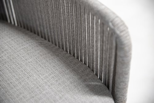 Bernini komt van het merk 4 Seasons Outdoor. Het frame is gemaakt van gepoedercoat aluminium. De stoel is voorzien van all weather touwen. Het Rope kan altijd buiten blijven staan zonder stof aan te trekken. Staat het kussen niet op de stoel, dan ziet de stoel er prachtig uit. Het zitkussen is licht grijs. Er is olefinestof gebruikt. Dit is een niet-vervagende stof. Deze stof is ook weerbestendig. De 4-seizoenen outdoor eetkamerstoel Bernini is een mooi gevormde stoel. De ronde vorm en het zachte kussen maken het tot een comfortabele stoel. Dit nieuwe product in de 4 Seasons Outdoor-serie is verkrijgbaar in twee kleuren: Frozen en Platinum. De Bernini tuinstoel zorgt voor een uitstekende ondersteuning van de rugleuning van de stoel, en is perfect te combineren met verschillende eettafels! Het merk 4 Seasons Outdoor produceert producten van de hoogste kwaliteit.