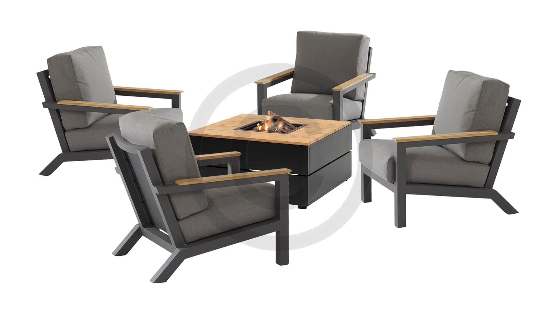 | Material Lounge Set | Teak, Powder coated Aluminium/Steel |