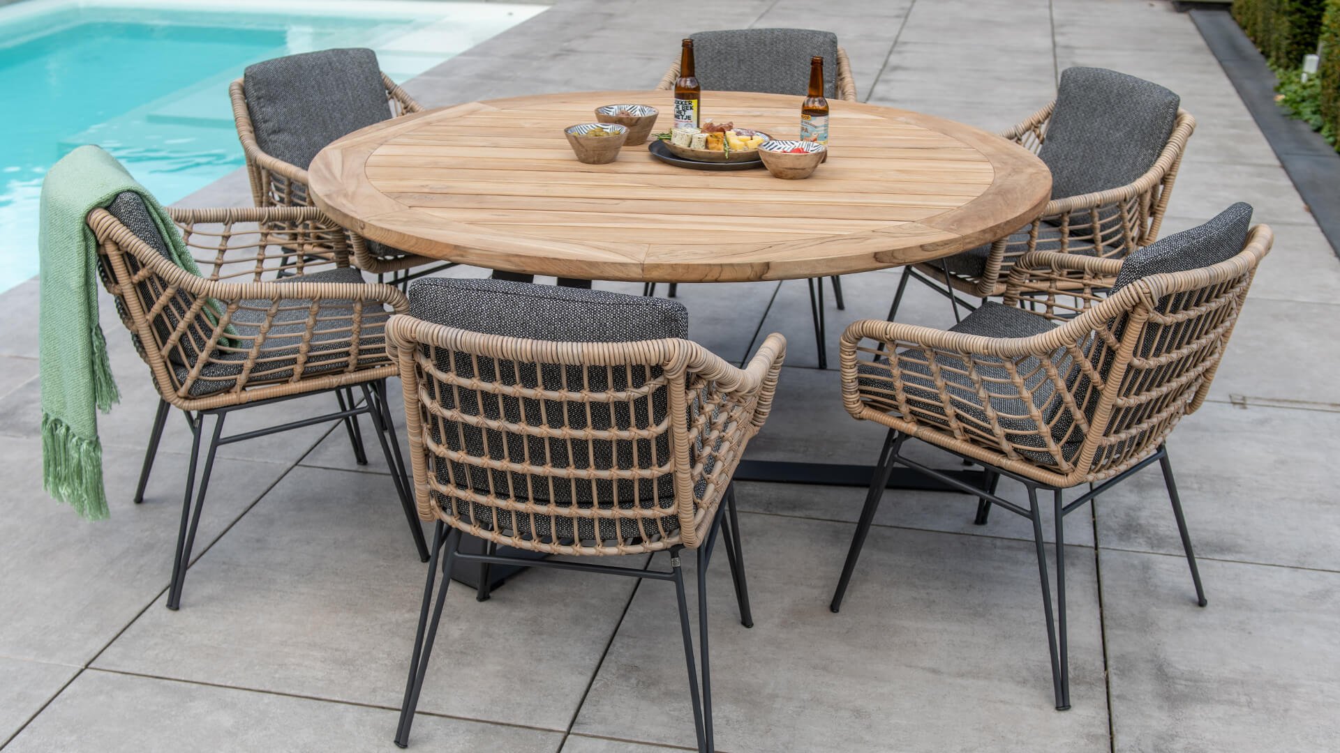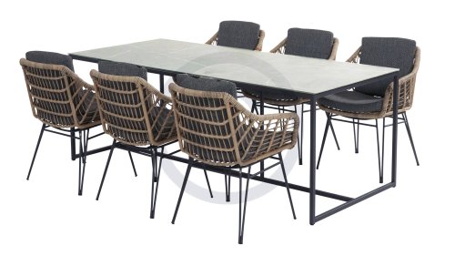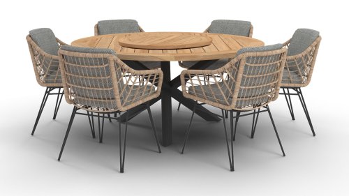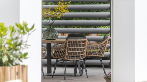 Door de combinatie van hoogwaardige materialen is dit tuinset weerbestendig en onderhoudsvriendelijk.