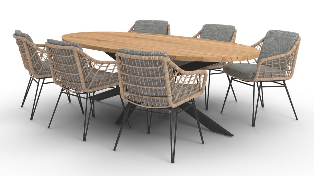 Door de combinatie van hoogwaardige materialen is dit tuinset weerbestendig en onderhoudsvriendelijk.