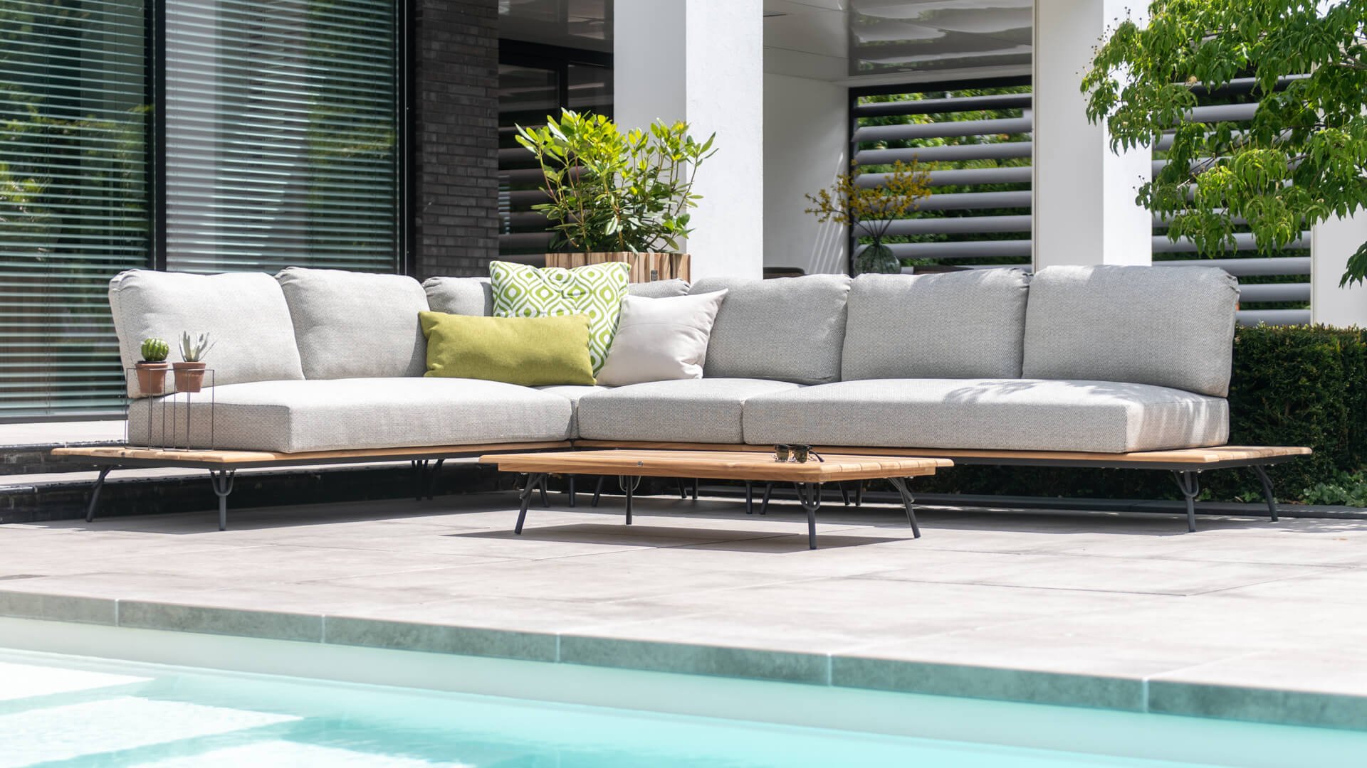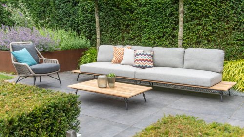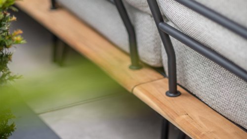 Het is heerlijk relaxen op de 4SO Cucina Teak Living! Er zijn veel variaties mogelijk, van compact tot grotere opstellingen. Het gedistingeerde frame van de 4 Seasons Cucina is vervaardigd uit hoge kwaliteit teakhout voor een authentieke uitstraling. Het design van het frame is bijzonder door het desinger lijnenspel. De fluffy kussens zijn weerbestendig en uitgevoerd in Olefin stof in de kleur . De stof oogt stoer door de jute-achtige look, in combinatie met het teak en de design pootjes een echte eye-cathcer! Door het gebruik van Textileen bespanning onder de zitkussens zijn de kussens extra comfortabel!