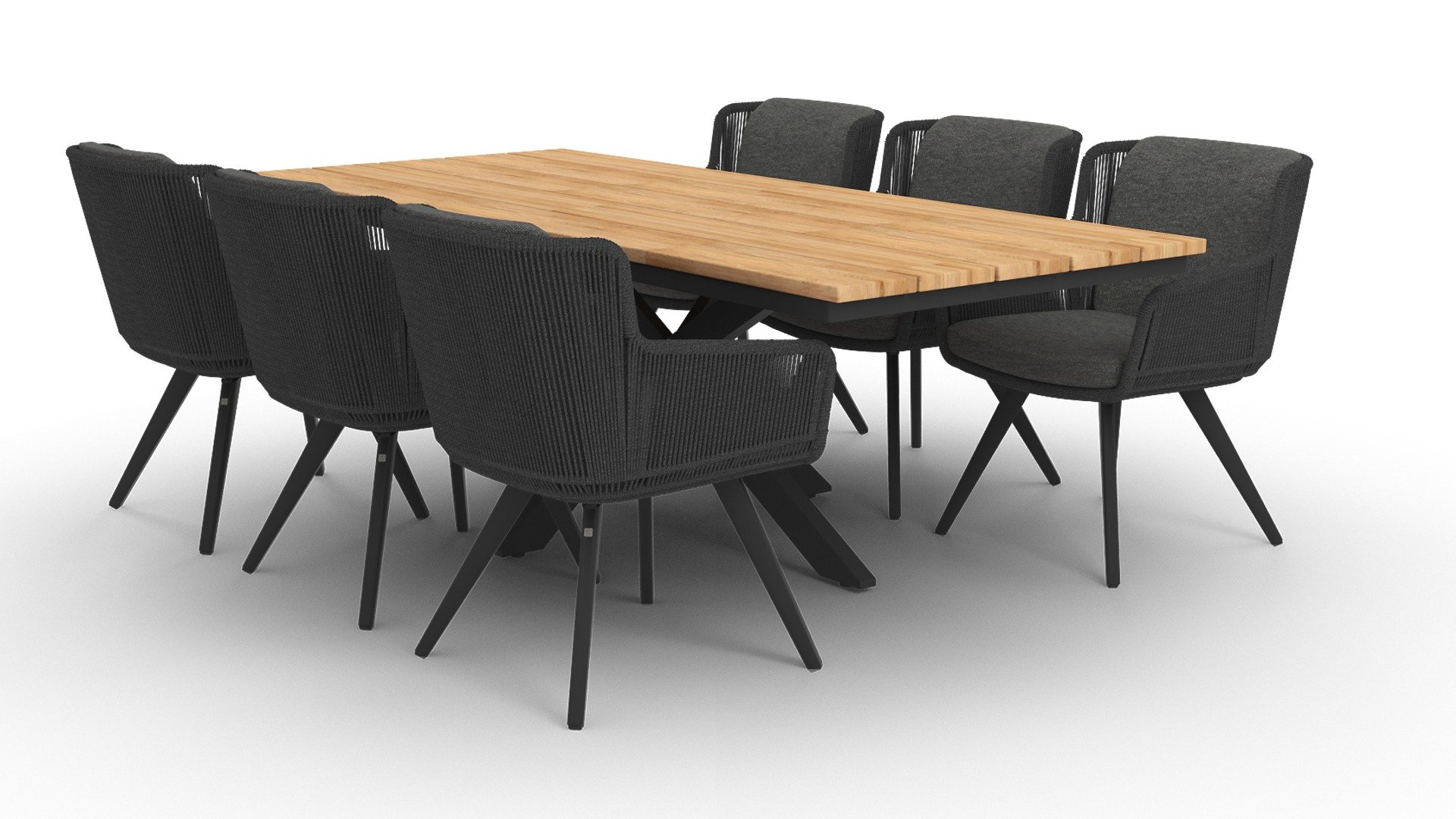 Het ergonomische ontwerp van de 4SO Flores Dining stoel zorgt voor voldoende zitcomfort. Doordat de rugleuning ver naar boven uitschuift, zit je natuurlijk en comfortabel. Zoals je van 4 Seasons Outdoor mag verwachten, is de Flores eetkamerstoel volledig gemaakt van all weather materialen. Het zitgedeelte van de stoel is samengesteld uit prachtige gevlochten Rope in antraciet kleur. Het Rope is een sterke polyester draad en voelt zeer comfortabel aan. Het Comfort antraciet zitkussen is gemaakt van olefin. Deze stof is vlek- en waterdicht en voelt verrassend zacht aan. De aluminium pootjes van Flores vallen direct op door hun exquise design. Aluminium is sterk, gemakkelijk te onderhouden en bestand tegen corrosie onder alle weersomstandigheden. Heb je al een degelijke tuin- of vrijetijdstafel en ben je op zoek naar een bijpassende eetkamerstoel? Toch is de Flores tuinstoel zeker een aanrader.