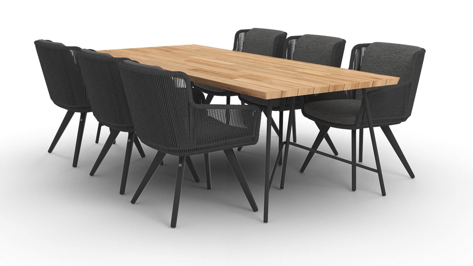 Het ergonomische ontwerp van de 4SO Flores Dining stoel zorgt voor voldoende zitcomfort. Doordat de rugleuning ver naar boven uitschuift, zit je natuurlijk en comfortabel. Zoals je van 4 Seasons Outdoor mag verwachten, is de Flores eetkamerstoel volledig gemaakt van all weather materialen. Het zitgedeelte van de stoel is samengesteld uit prachtige gevlochten Rope in antraciet kleur. Het Rope is een sterke polyester draad en voelt zeer comfortabel aan. Het Comfort antraciet zitkussen is gemaakt van olefin. Deze stof is vlek- en waterdicht en voelt verrassend zacht aan. De aluminium pootjes van Flores vallen direct op door hun exquise design. Aluminium is sterk, gemakkelijk te onderhouden en bestand tegen corrosie onder alle weersomstandigheden. Heb je al een degelijke tuin- of vrijetijdstafel en ben je op zoek naar een bijpassende eetkamerstoel? Toch is de Flores tuinstoel zeker een aanrader.