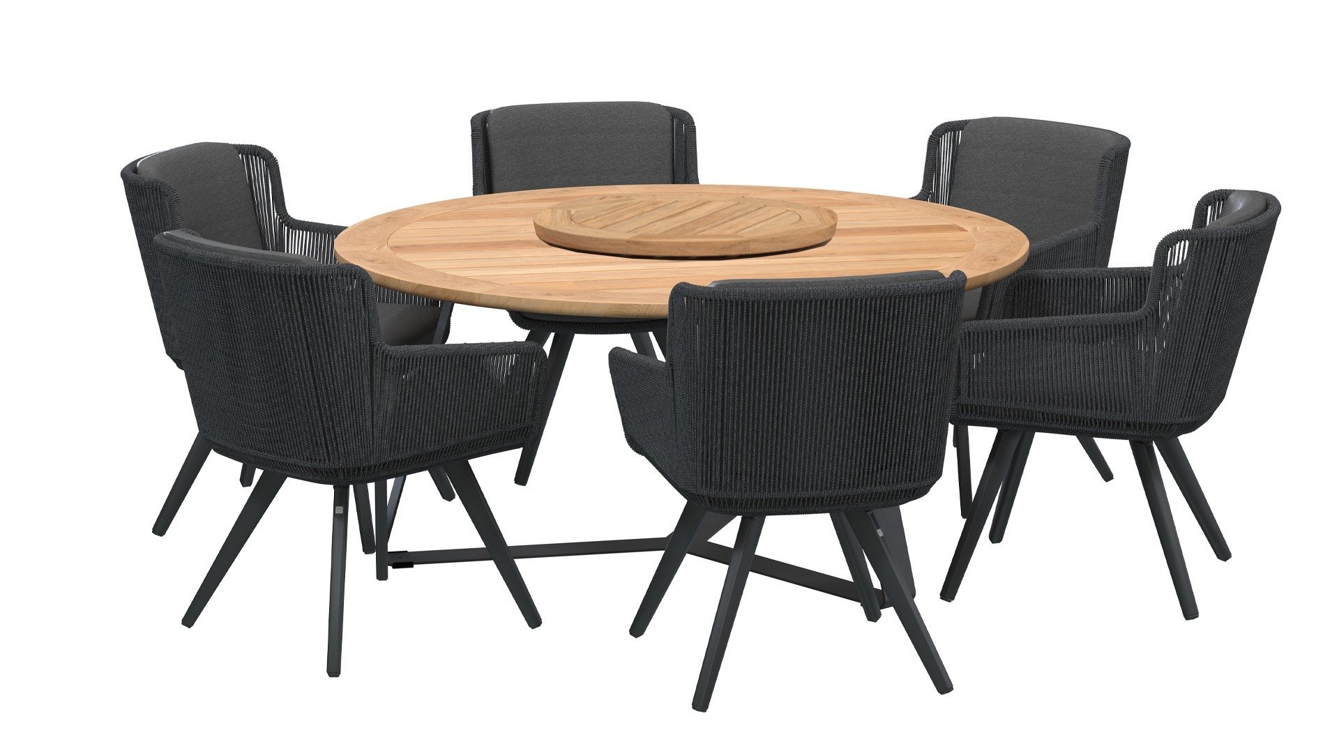 Het ergonomische ontwerp van de 4SO Flores Dining stoel zorgt voor voldoende zitcomfort. Doordat de rugleuning ver naar boven uitschuift, zit je natuurlijk en comfortabel. Zoals je van 4 Seasons Outdoor mag verwachten, is de Flores eetkamerstoel volledig gemaakt van all weather materialen. Het zitgedeelte van de stoel is samengesteld uit prachtige gevlochten Rope in antraciet kleur. Het Rope is een sterke polyester draad en voelt zeer comfortabel aan. Het Comfort antraciet zitkussen is gemaakt van olefin. Deze stof is vlek- en waterdicht en voelt verrassend zacht aan. De aluminium pootjes van Flores vallen direct op door hun exquise design. Aluminium is sterk, gemakkelijk te onderhouden en bestand tegen corrosie onder alle weersomstandigheden. Heb je al een degelijke tuin- of vrijetijdstafel en ben je op zoek naar een bijpassende eetkamerstoel? Toch is de Flores tuinstoel zeker een aanrader.