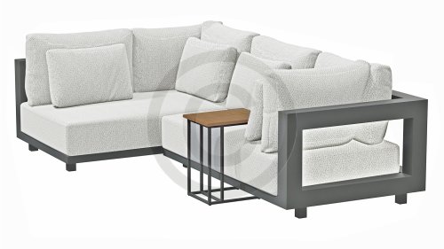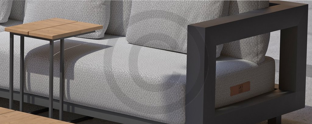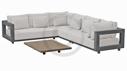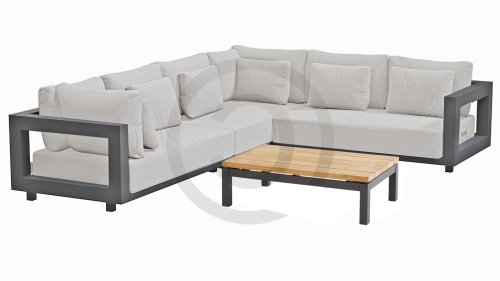Een groot voordeel van aluminium is het lichte gewicht, waardoor de fauteuilset gemakkelijk te verplaatsen is. Daarnaast roest het niet en heeft het weinig onderhoud nodig. Veeg regelmatig af met een zachte borstel of doek en warm water om het frame schoon te houden. Net als de ounge heeft de salontafel ook een aluminium frame. Het tafelblad van de tafel is gemaakt van FSC teak, een duurzaam en weerbestendig hout. Teakhout heeft een hoge vezeldichtheid, waardoor het hout glad aanvoelt en niet schilfert. Hierdoor is teak een zeer geschikt materiaal voor tuinmeubelen. Omdat het een natuurlijk product is, zal hout na verloop van tijd verouderen en kunnen er barsten en haarscheurtjes ontstaan. Dit is onderdeel van de charme van teakhout en heeft geen effect op de kwaliteit van de lounge. Wil je de originele kleur behouden, dan is het aan te raden om teak te behandelen met een beschermer.