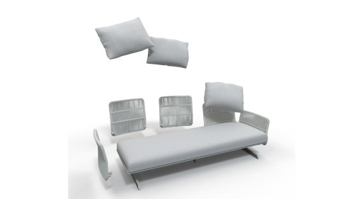 De 4SO lounge Play is vervaardigd met het duurzame rope in de kleur frozen, een lichte kleur met grijstinten. Deze kleur combineert fantastisch met het aluminium onderstel in de kleur frost grey. Deze frisse kleurencombinatie geeft uw terras een luxe en moderne uitstraling. In de kleur frozen zijn vele andere meubelen verkrijgbaar in het assortiment van 4 Seasons Outdoor, waardoor u kunt blijven door combineren. Een leuke toevoeging bij deze hoekbank is bijvoorbeeld de Carthago loungestoel in frozen. Een topproduct van 4 Seasons Outdoor, de Play loungeset! De basis van de Play bestaat uit een twee- en driezitsbank met comfortabel zitkussen. Deze kunt u naar eigen smaak ‘aankleden’ met arm- en rugleuningen. De rugleuningen zijn standaard voorzien van bijpassende kussens.