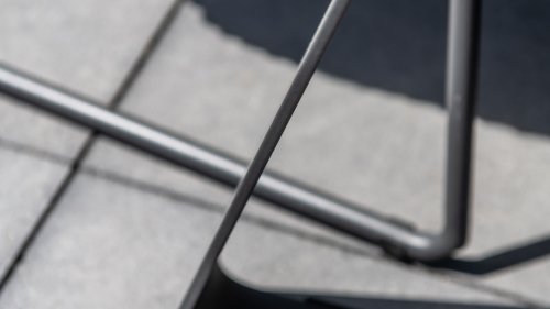 Het onderstel is in fragiel gevormd, maar oersterk, gepoedercoat R.V.S. in een neutrale antraciete kleur. Het onderstel heeft een z.g.n. "slee-poot" vorm, welke gecombineerd met de prachtige Taupe kleurige Rope-draad een modern maar toch "warme"uitstraling geeft. Het met Taupe kleurig Rope omvlochten frame is van onderhoudsvrij aluminium.