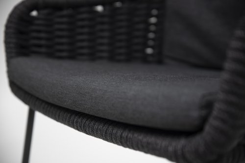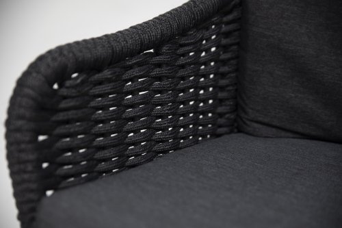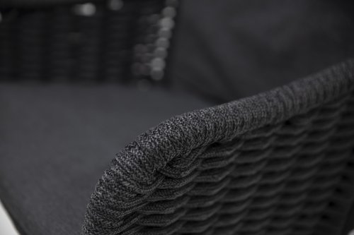 Het 4 Seasons Wing frame is omvlochten is met Antraciet gekleurd synthetische wicker in de vorm van touw (Rope). De kussens zijn uitgevoerd in een prachtige antraciet kleurige Olefin stof. Door de veerkracht van het Rope materiaal en de fijne kussens ontstaat een subliem zit-comfort! De kussens hebben een Olefin hoes welke af te ritsen is en uit te wassen op 30 graden. Deze stof is zeer weerbestendig en duurzaam.