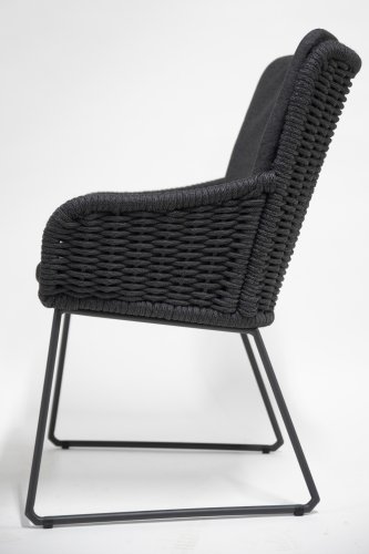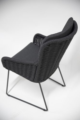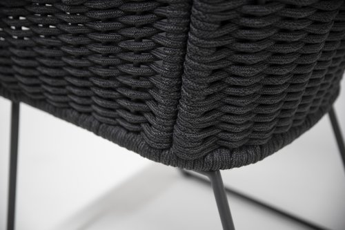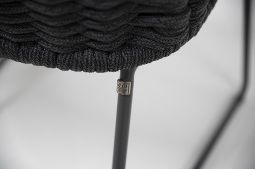 Het onderstel is in fragiel gevormd, maar van oersterk gepoedercoat R.V.S. in een neutrale antraciete kleur. Het onderstel heeft een z.g.n. "slee-poot" vorm samen met het prachtige Antraciet kleurige Rope-draad geeft dit een modern maar toch "warme"uitstraling. Het met Antraciet kleurig Rope omvlochten frame is van onderhoudsvrij aluminium.