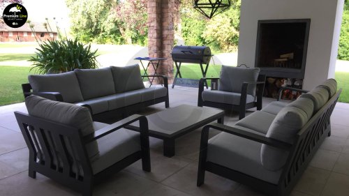 De semi-all weather kussens die op de loungeset liggen krijgt u er standaard bij en hebben een hoog comfort niveau. Het set is te koop in losse onderdelen maar ook als complete loungeset. In de 3-zits bank kan een volwassen persoon heerlijk languit in relaxen!