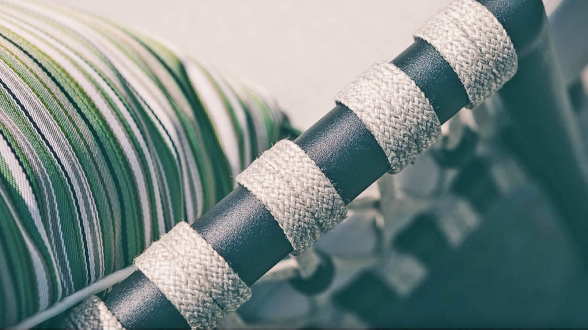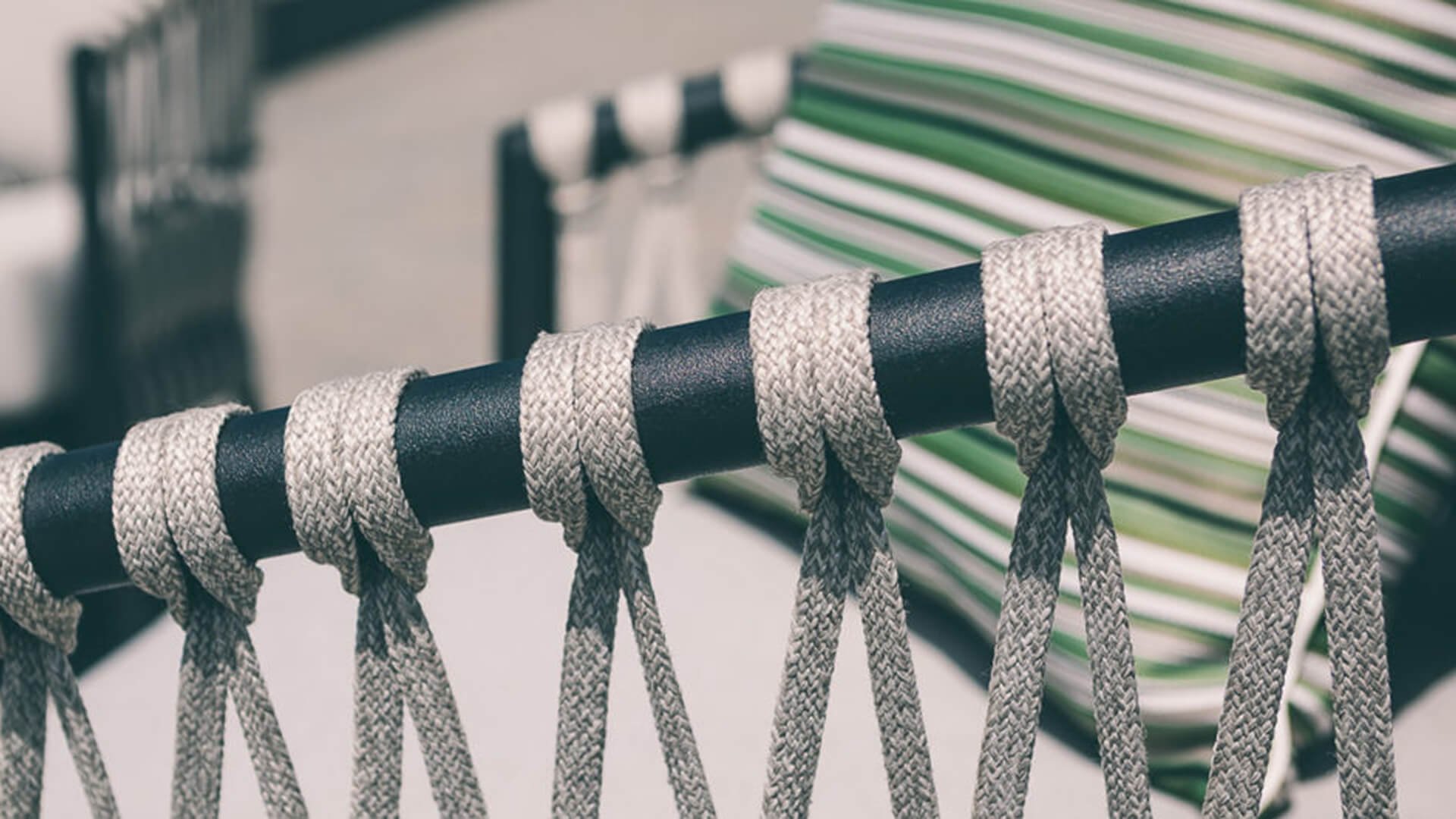 Dit prachtige materiaal is perfect voor buitengebruik, want AppleBee Rope is niet zo maar een gewone veter waar u uw schoenen mee strikt. AppleBee gebruikt zeer hoge kwalitiets Rope gemaakt van 100% SDP ( Slution Dyed Polypropylene). Dit materiaal is extreem sterk en heeft een zeer klein rekbaarheids percentage. Polyproylene is op olie basis waardoor vuil en verontreiniging nauwelijks in kan dringen, net als onze kussens. AppleBee biedt exclusieve designs, waarbij hand geweven Rope patronen en technieken worden gebruikt.