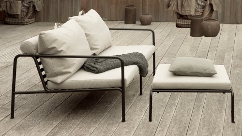 Het onderhoudsvrije gepoedercoat frame en de constructie van de grote zachte rugkussens is precies dat - de eenvoud van de structuur, waarbij lage lijnen ervoor zorgen dat het ontwerp er altijd trots uitziet, zowel met als zonder kussens - zomer of winter. De handvatten van de kussens, is een statement om de functie van het product te maken, waardoor ze worden gemaakt gemakkelijk vast te pakken en indien nodig op te bergen.