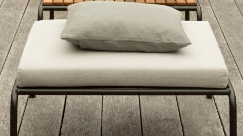 De Alpine groene en de Ash licht grijs/ecru kleurige kussens zijn gemaakt met Sunbrella Heritage-stof die 50% gerecycled acryl bevat. Kleurrijke vezeleinden van het proces van hergebruik van het primaire materiaal kunnen in het weefsel verschijnen en de stofkleur doen variëren van de ene batch tot de andere. Hierdoor ontstaat een unieke stof met een natuurlijke uitstraling en vintage charme. De stof is Oeko-tex gecertificeerd, waterafstotend, vlekbestendig en onderhoudsvriendelijk.