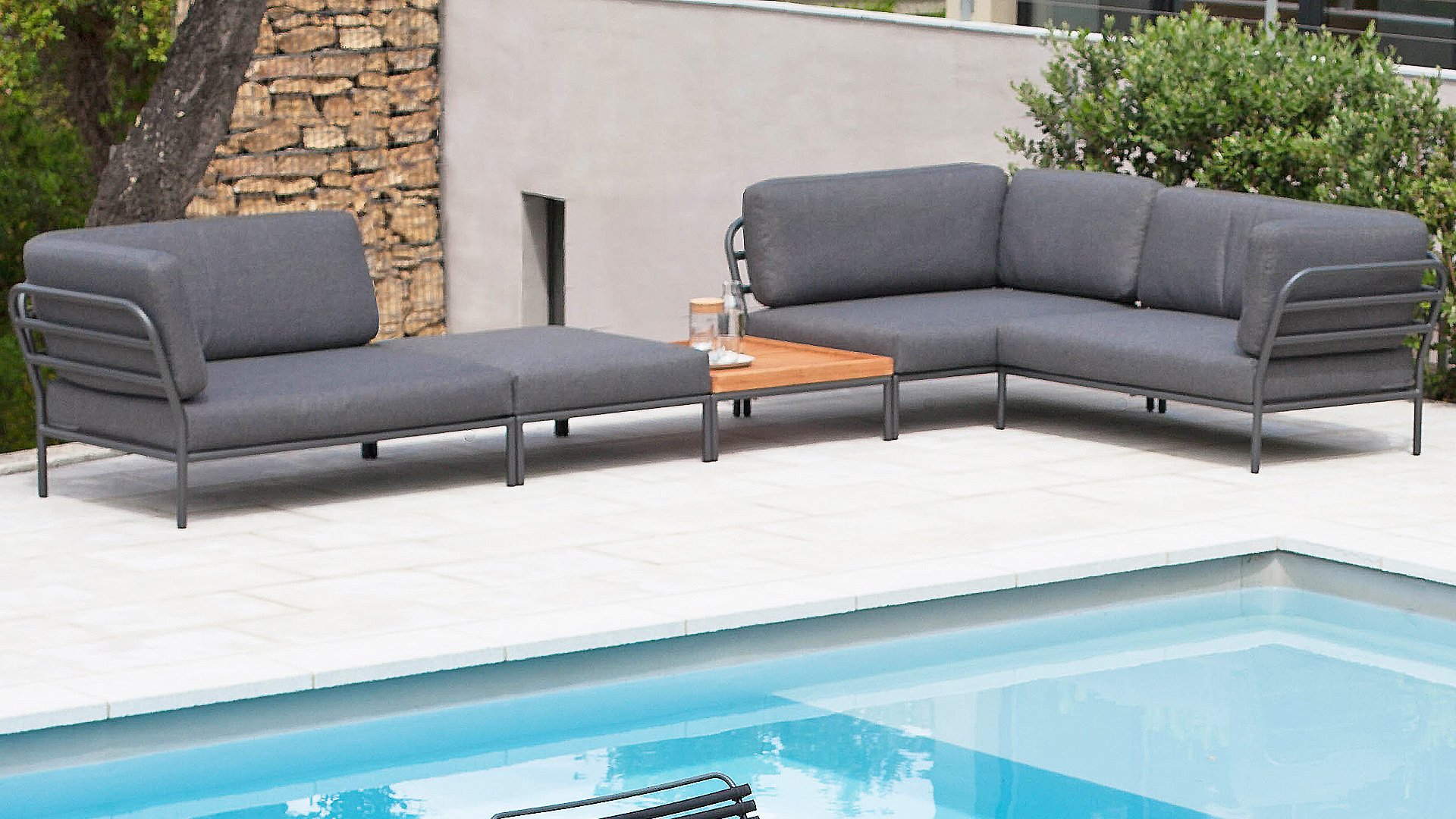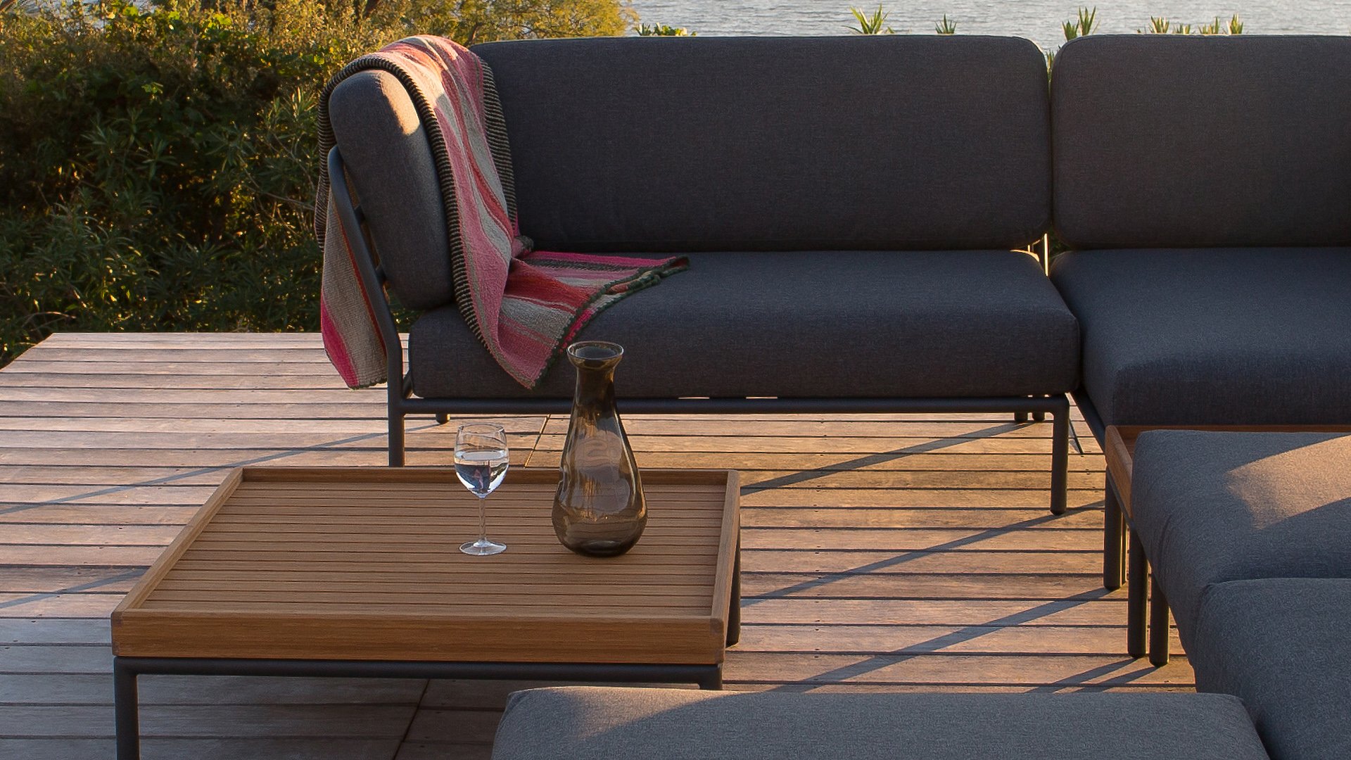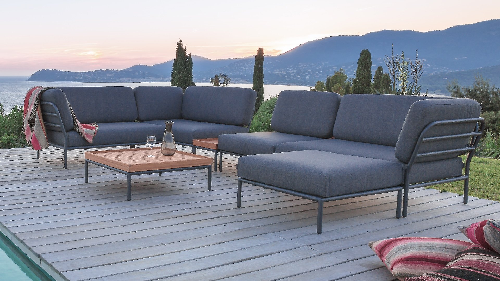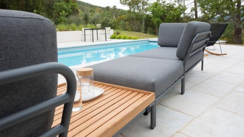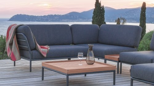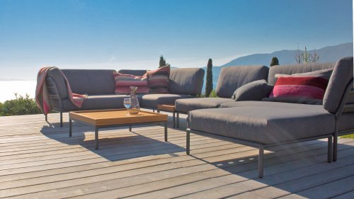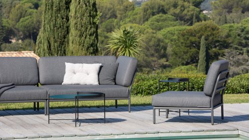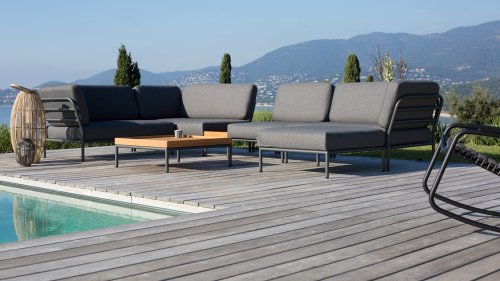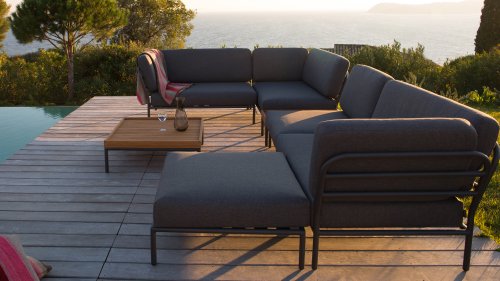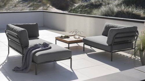 De Level Lounge, ontworpen door Henrik Pedersen. De verschillende elementen van deze collectie kunnen op verschillende manieren met elkaar worden gecombineerd, wat resulteert in een hoogwaardige loungehoek op uw terras. De bankmodule is gemaakt van gepoedercoat aluminium en heeft kussens van waterafstotend, donkergrijs materiaal. Deze ruime, zachte loungeset schreeuwt om zon, boeken en een drankje. En het allergrootste pluspunt? Ook met zijn tweeën kun je comfortabel liggen, omdat er kussens aan de armleuningen bevestigd zijn. Kies dus je lievelingskant, en het genieten kan beginnen.