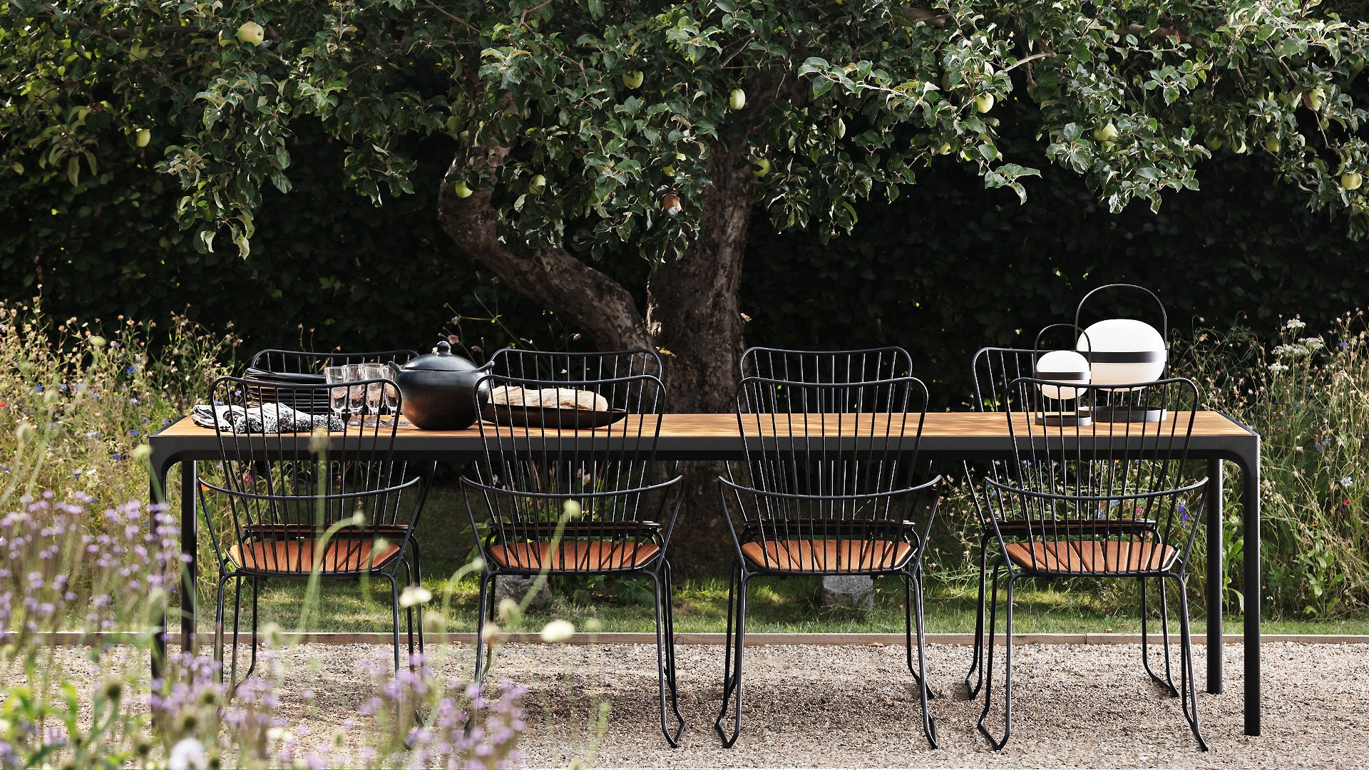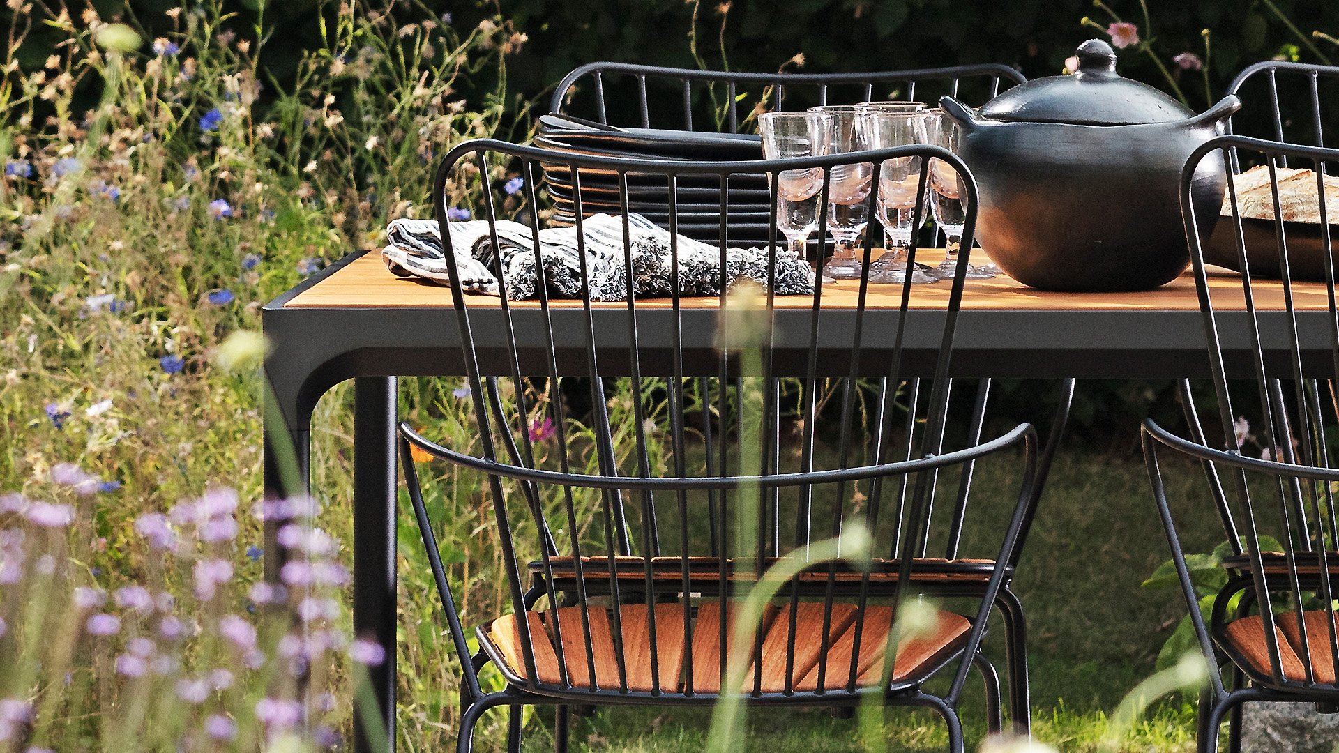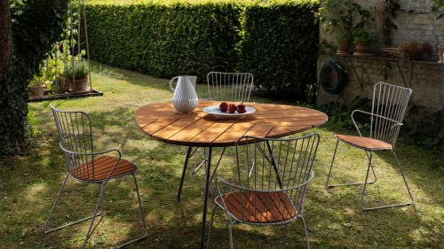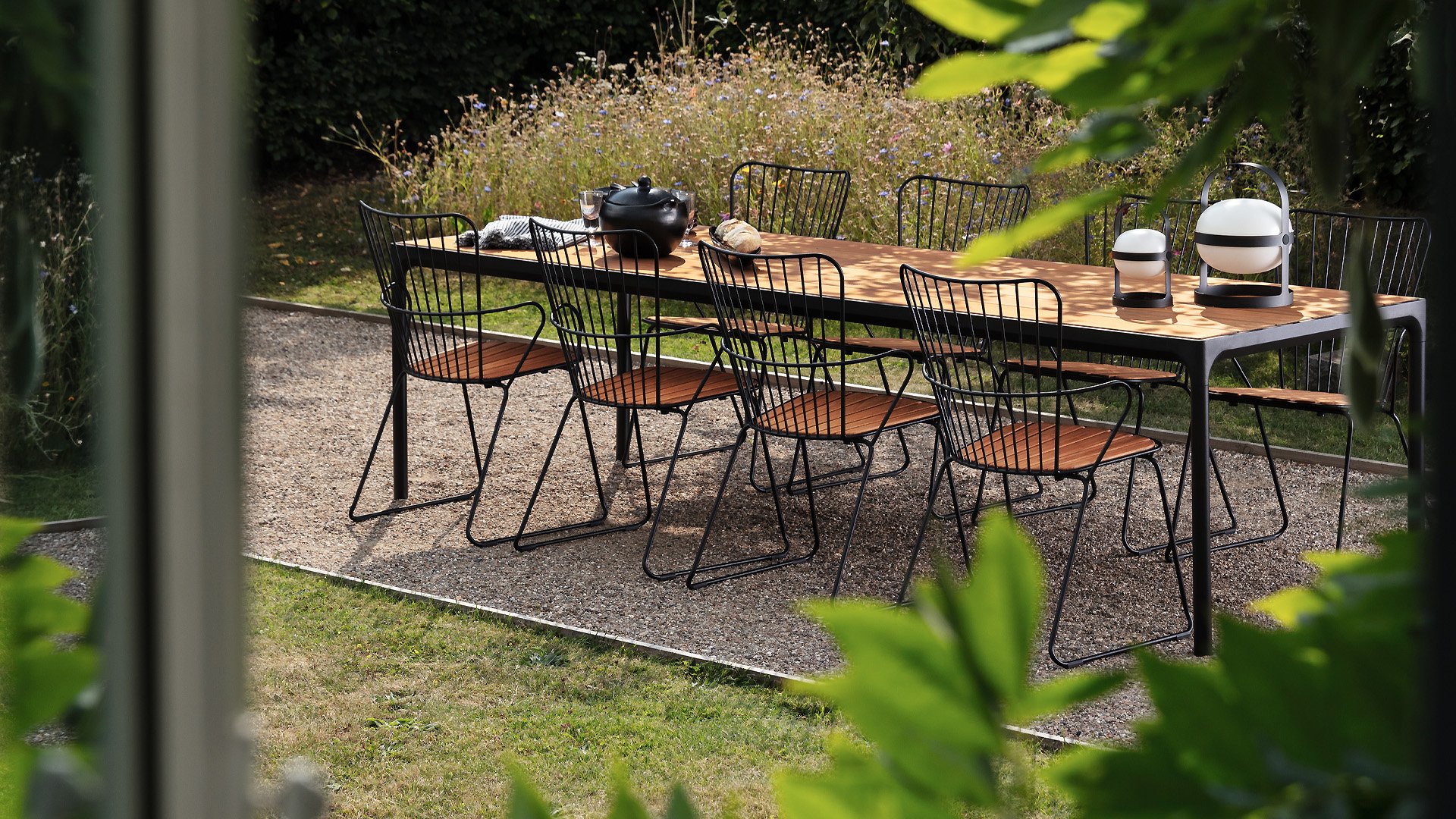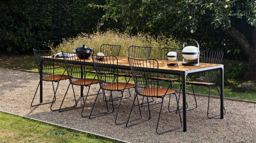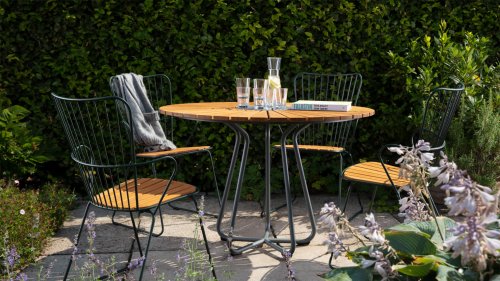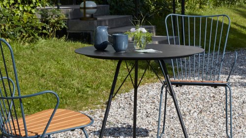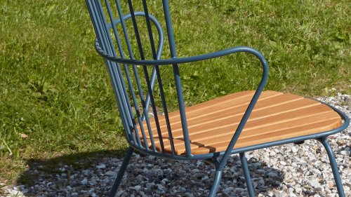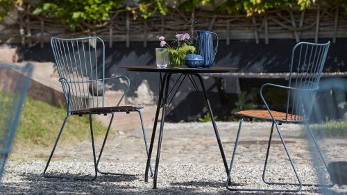 De HOUE PAON is licht Scandinavisch in zijn ontwerp maar met een vleugje Franse Victoriaanse romantiek. De HOUE PAON-lijn bestaat uit eetkamerstoelen, fauteuil, schommelstoel, een tweezitsbank en een barstoel. Gemaakt van gepoedercoat staal in combinatie met prachtige bamboe lamellen.
