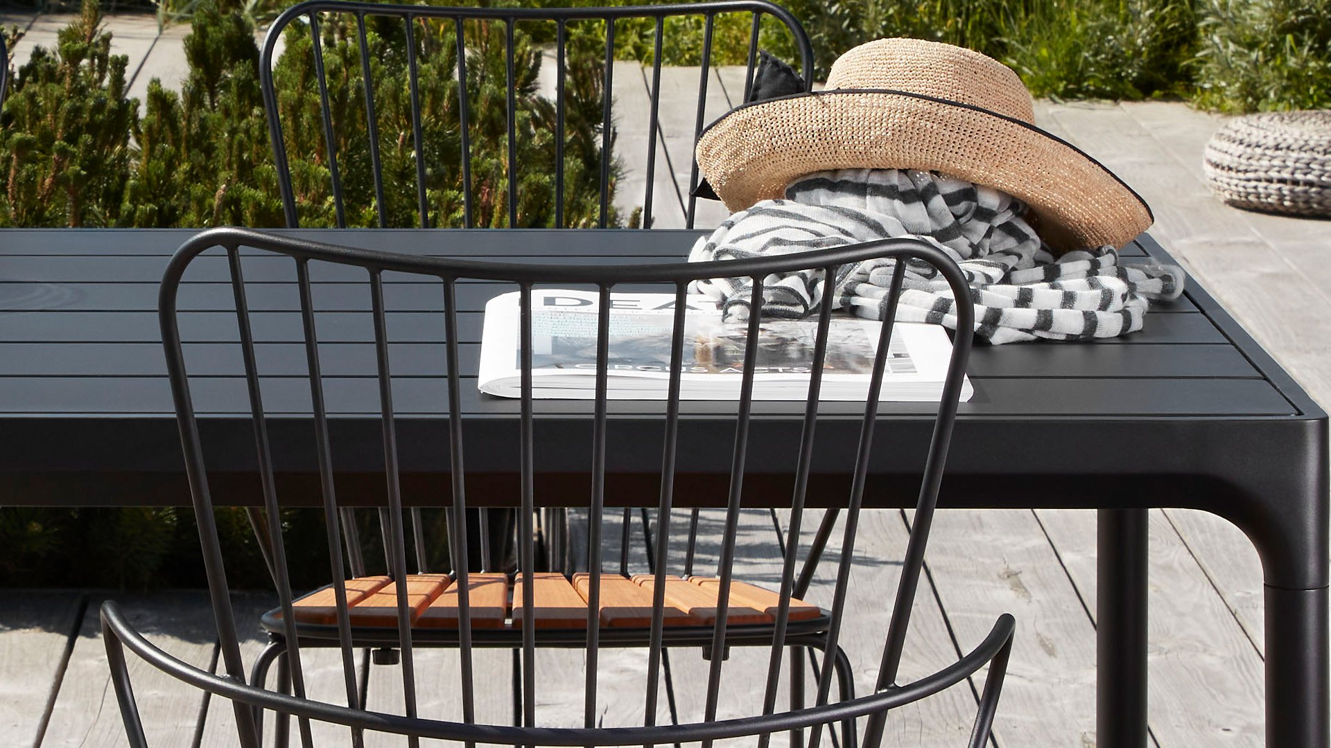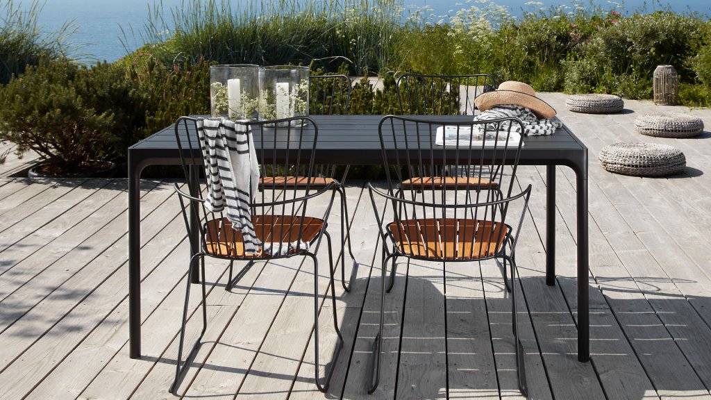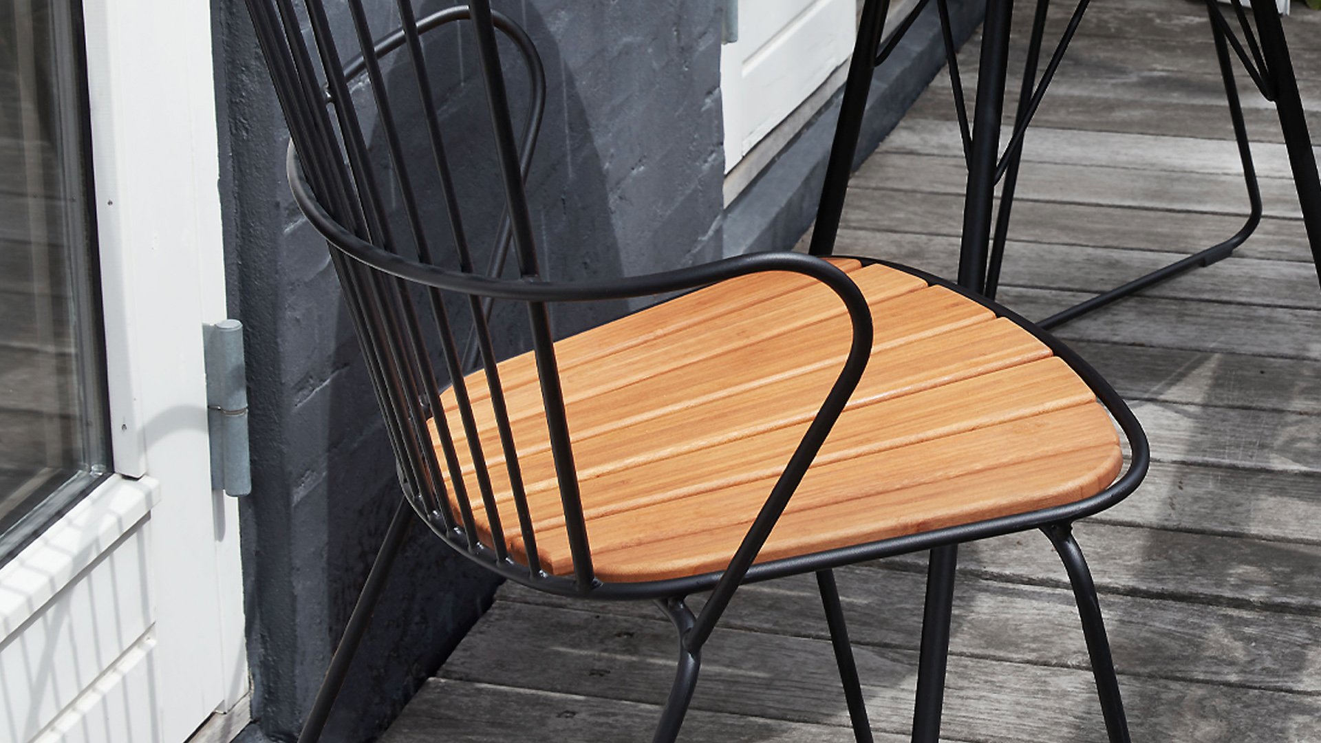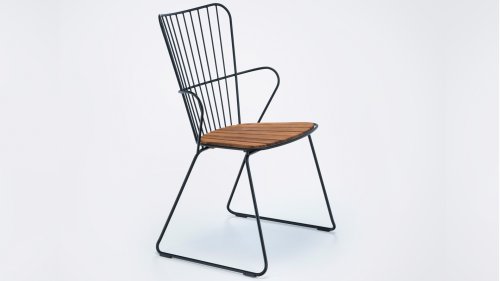 De HOUE PAON is licht Scandinavisch in zijn ontwerp maar met een vleugje Franse Victoriaanse romantiek. De HOUE PAON-lijn bestaat uit eetkamerstoelen, fauteuil, schommelstoel, een tweezitsbank en een barstoel. Gemaakt van gepoedercoat staal in combinatie met prachtige bamboe lamellen.