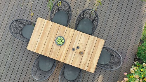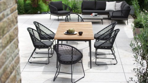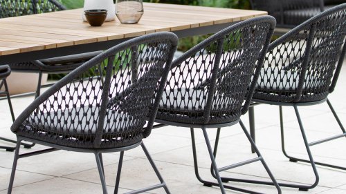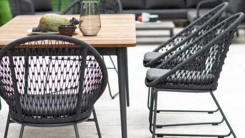 Het Niehoff Kuta frame is omvlochten is met synthetische wicker in de vorm van touw (Rope). De kussens zijn uitgevoerd in een prachtige Praia Charcoal stof. Door de veerkracht van het Rope materiaal en de heerlijke zit-en rugkussens ontstaat een subliem zit-comfort! Deze stof is zeer weerbestendig en duurzaam.