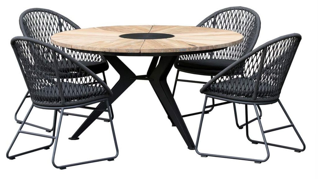 1 x Niehoff Nexor tafel Ø 140cm teak geborsteld-staal gepoedercoat