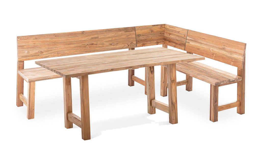 Ons gerecycled teak komt uitsluitend van het Indonesische eiland Java en komt van oude koloniale gebouwen, schuren, bruggen of boten. Het hout zelf is van de hoogste kwaliteit en vaak meer dan 80 jaar oud. Scheuren, spijkergaten en reparaties kunnen zichtbaar zijn in het hout. De antieke uitstraling en gebruikssporen zijn gewenst en onderstrepen het unieke karakter van dit meubel.