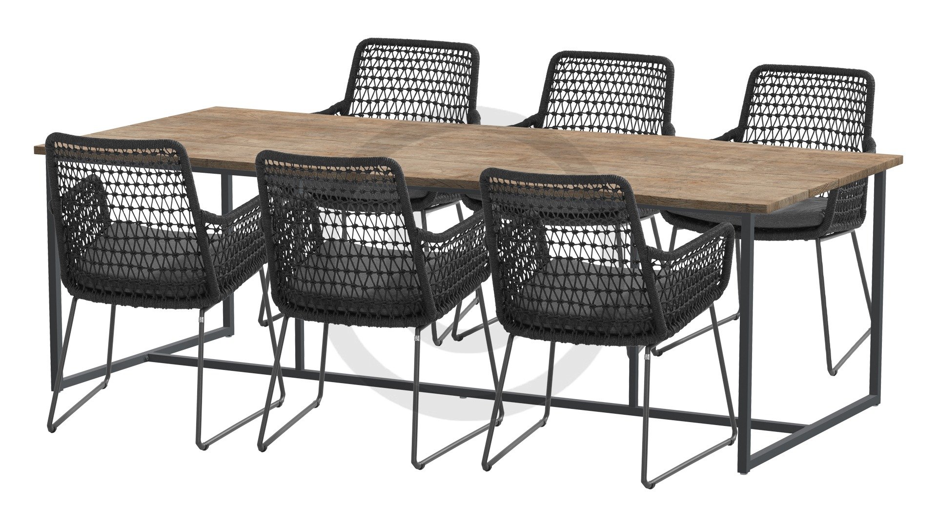 1 x 4 Seasons Outdoor Goa Tafel 220x95cm Alu Antraciet/Robusto Teak