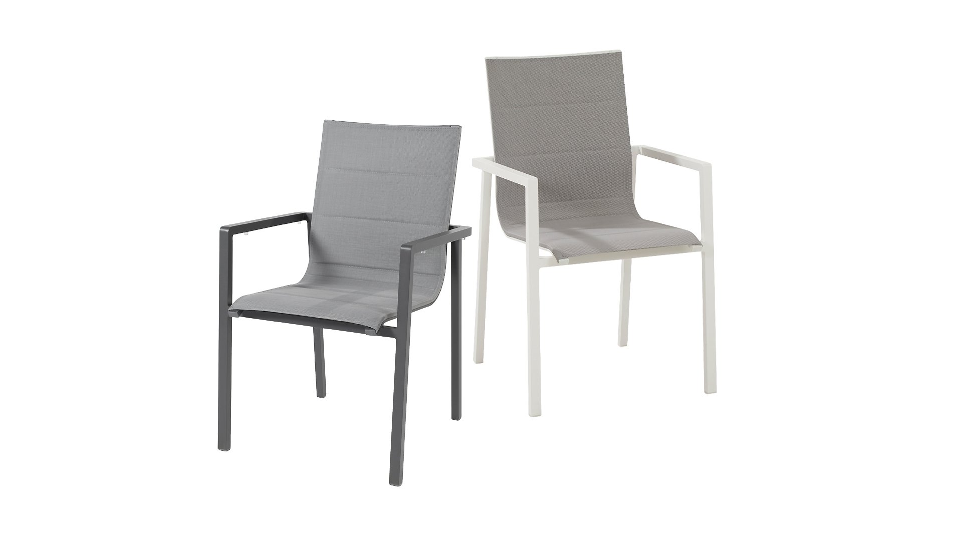 Het frame van de Taste by 4seasons Bari tuinstoel is van aluminium, de zit en rug is van weersbestendig textileen.Ook is de Taste by 4 Seasons Bari tuinstoel verkrijgbaar met een gevulde Textileen (padded) zit en rug die zorgt voor een nog beter zitcomfort! Stapelbaar en verkrijgbaar in de chique kleur Slate Grey, Matt Carbon en White.