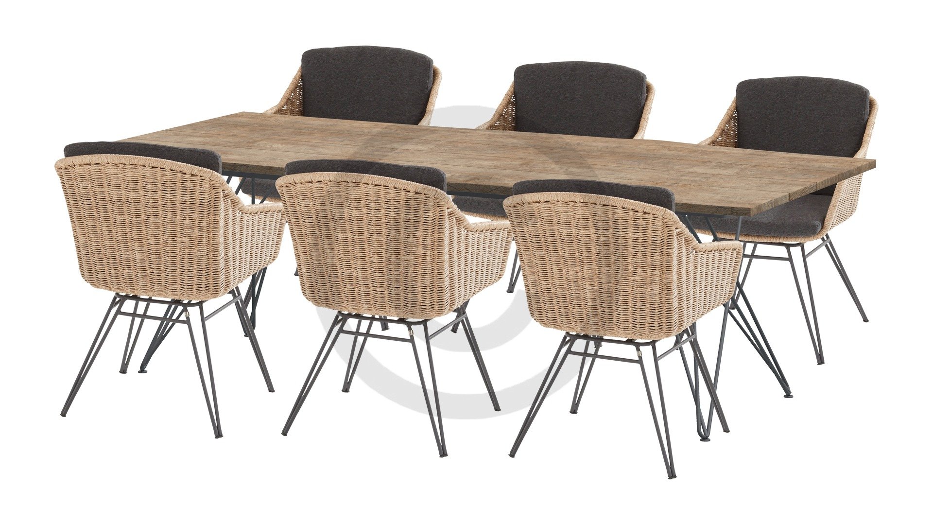 1 x 4 Seasons Outdoor Tampa Tafel 220x95cm Antraciet/Robusto Teak
