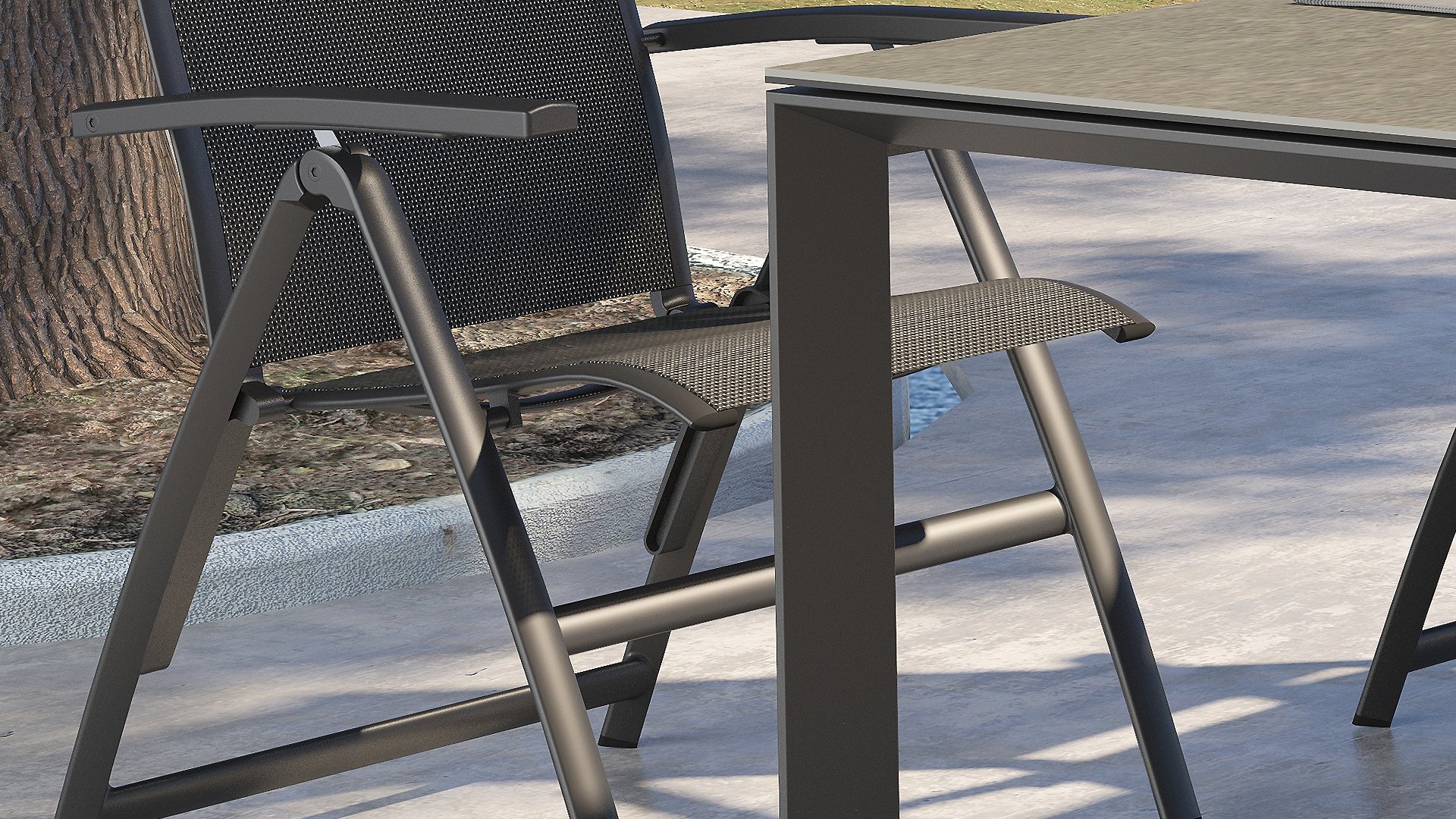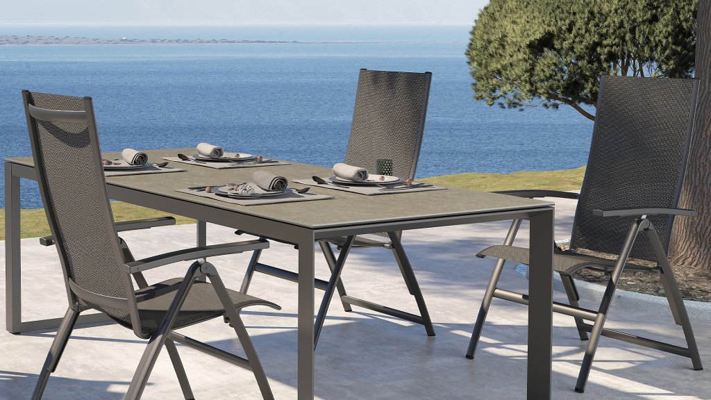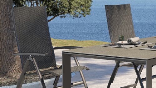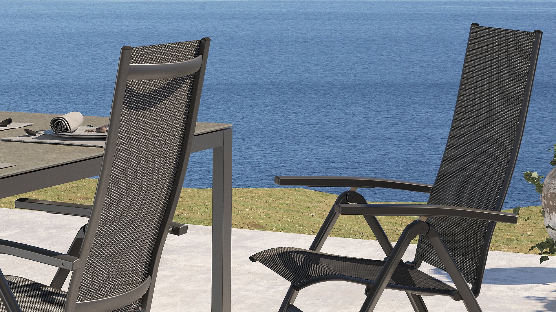 De Taste 4 Seasons Cadizis een degelijke standenstoel met een elegant design en een uitmuntend zitcomfort. 100% aluminium frame, sterk, lichgewicht en onderhoudsvrij. Nu in de prachtige kleur: Matt Carbon . De verstelbare stoel, met aluminium frame in "Mat Carbon" kleur met textileen bespanning. Deze verstelbare tuinstoel Cadiz van het tuinmeubel merk Taste by 4 Seasons is licht van gewicht en in te klappen zodat de stoelen makkelijk zijn op uw balkon en terras, maar ook handig op te bergen zijn. U kunt deze ook gewoon het hele jaar door buiten laten staan!