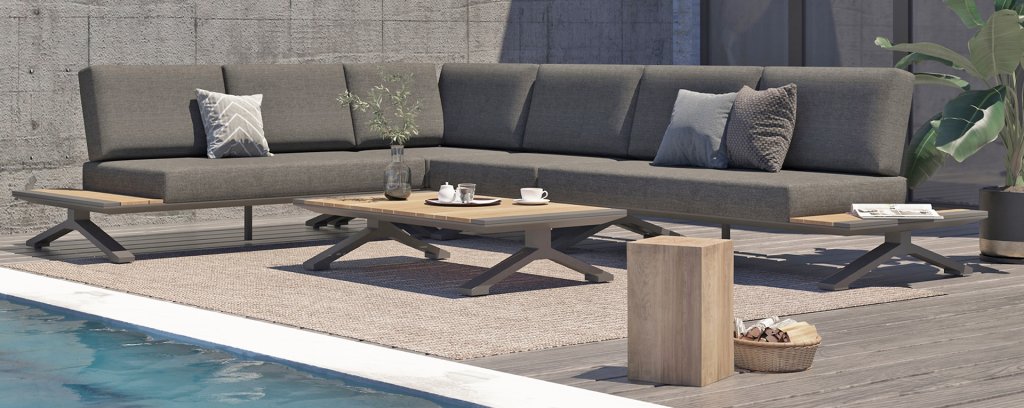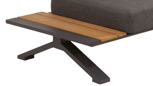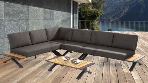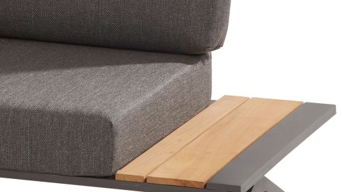 Het onderstel van de Taste Nostra loungeset is van gepoedercoat aluminium en is in de kleur antraciet verkrijgbaar. Op de uiteinden van de Nostra loungeset zijn mooie plateaus van Teakhout met Aluminium gesitueerd welke heel handig zijn om uw drankje of hapje neer te zetten.