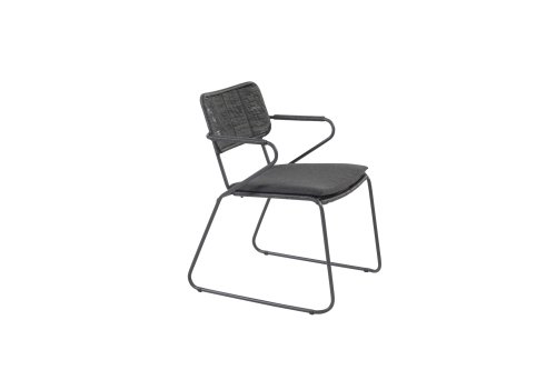 Het antraciet frame van RVS heeft een sterke maar minimale en industriële look door de dunne ronde buizen. De afgeronde hoeken geven het nog steeds wel een vriendelijk karakter. Het materiaal van de Swing stoel is uniek in onze collectie. Het is een gedraaide vlechtwerk-draad. Het geeft de Swing stoel een natuurlijk touw-achtig uiterlijk. Zowel de zitting als de rugleuning is gemaakt van dit materiaal en ook de armleuning zijn omwikkeld met hetzelfde vlechtwerk.
