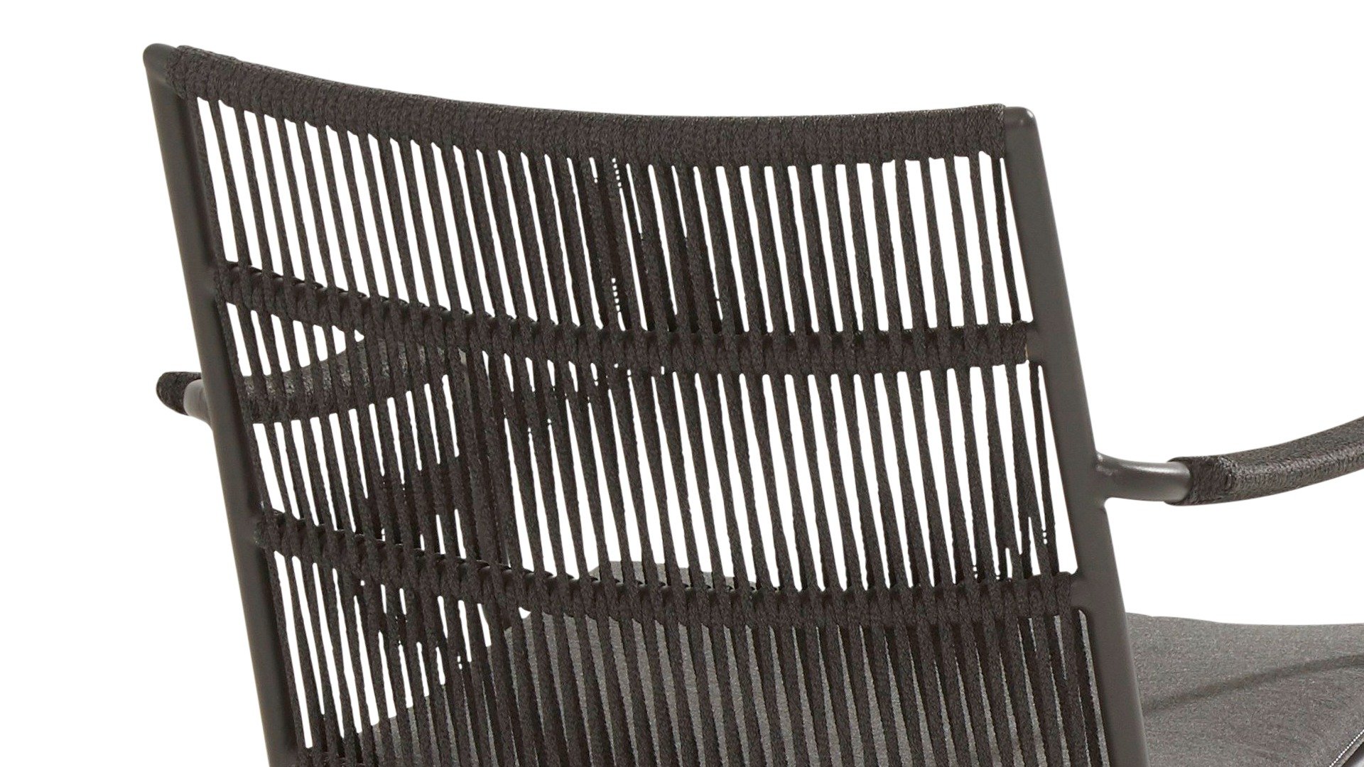 Taste by 4 Seasons Outdoor gebruikt weerbestendig Rope dat tot in detail is afgewerkt in de Wave tuinstoel, ook het frame is helemaal weerbestendig door de antraciet gekleurde poedercoating. De comfortabele kussens hebben een afritsbare hoes van Olefin zodat deze bestand zijn tegen de weersinvloeden en tevens makkelijk uit te wassen zijn. Het R.V.S. onderstel gecombineerd met het prachtige antraciet kleurige vlechtwerk geeft een modern en eigentijds maar toch "warme" uitstraling.