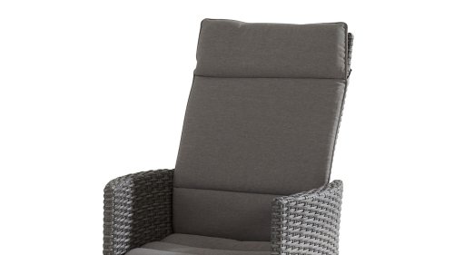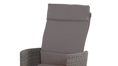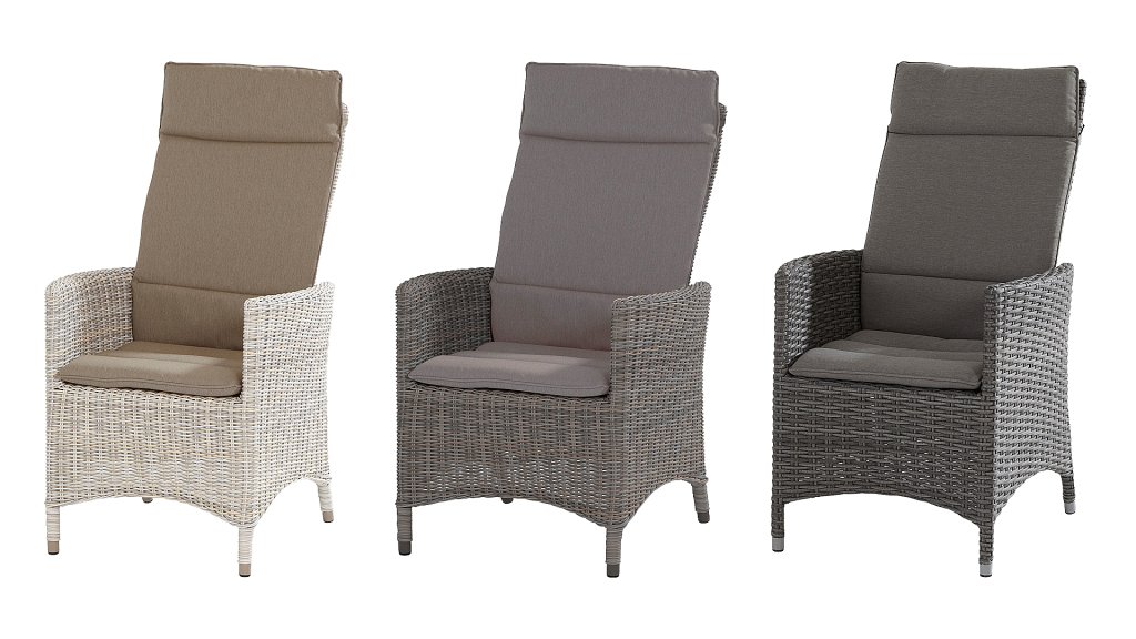 De rugleuning is door middel van een hendel aan de rechter zijkant te verstellen. Samen met de voetenbank staat dat garant voor een comfortabel "lounge gevoel". Daarnaast is er uitstekend in te vertoeven tijdens het eten. Rugleuning omhoog geeft de stoel de ondersteuning die u mag verwachten. De stoelen staan vooral erg mooi bij onze teakhouten tafels. Uiteraard is "Mix en Match volledig mogelijk, vanaf nu leverbaar in 4 kleuren: Roca, Kubu, Frio en Elzas.