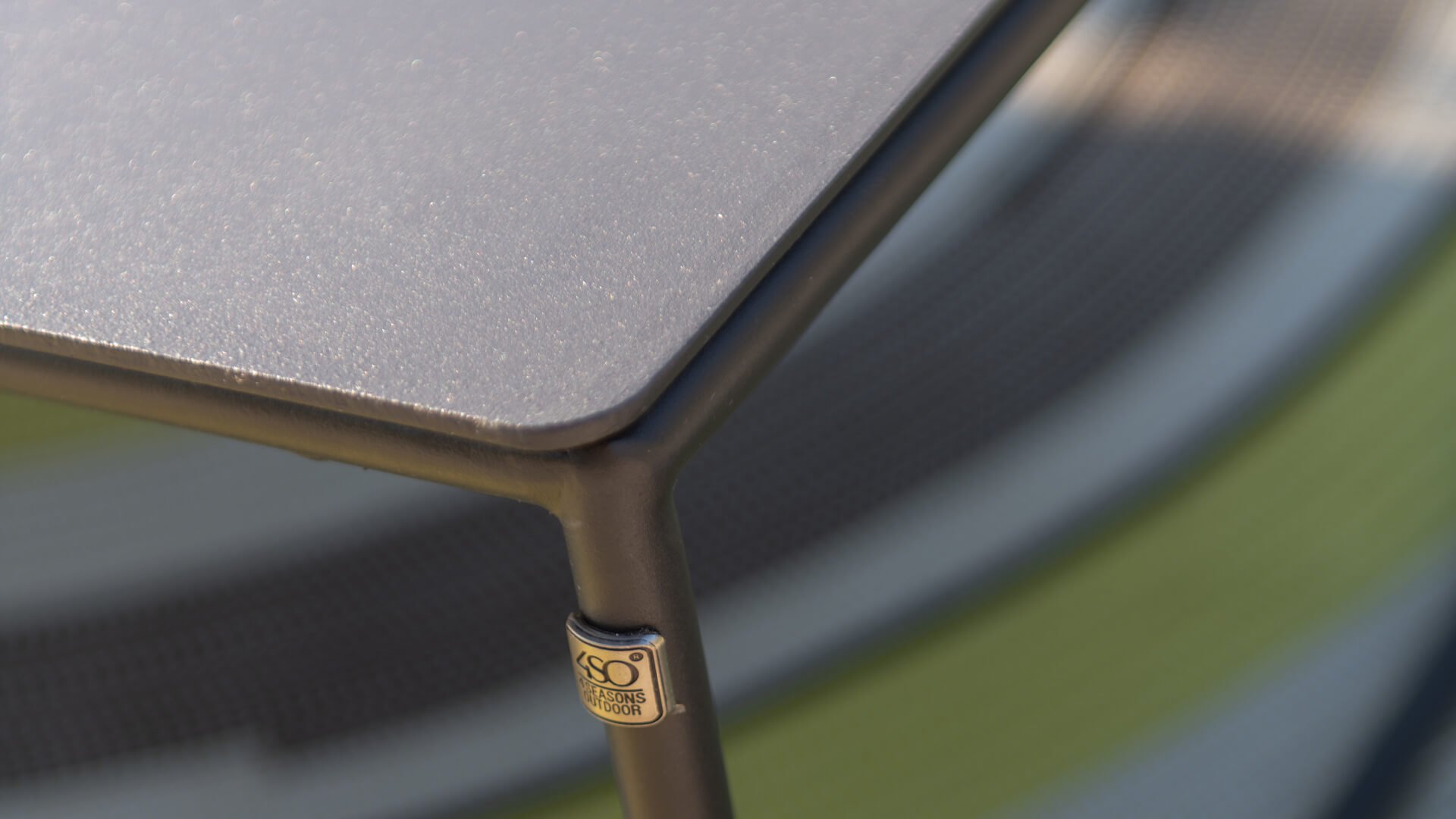 Het fragiele en minimalistische frame is vervaardigd van zeer sterk R.V.S. waardoor het meer dan voldoende stevigheid en slijtvastheid aan het Taste Elba loungeset geeft. Het R.V.S. frame is met een antraciet gekleurde poedercoating afgewerkt waardoor een harmonie van kleuren ontstaat. De 4 Seasons Sumatra lounge tafels hebben een uniek tafelblad van teak. Hiervoor zijn de prachtige doorsnedes van de boom gebruikt. Zo komen de typische vormen van de wortel geweldig uit! Iedere tafel is uniek en heeft zijn eigen natuurlijke vormen. Wederom een unieke product van 4 Seasons Outdoor!