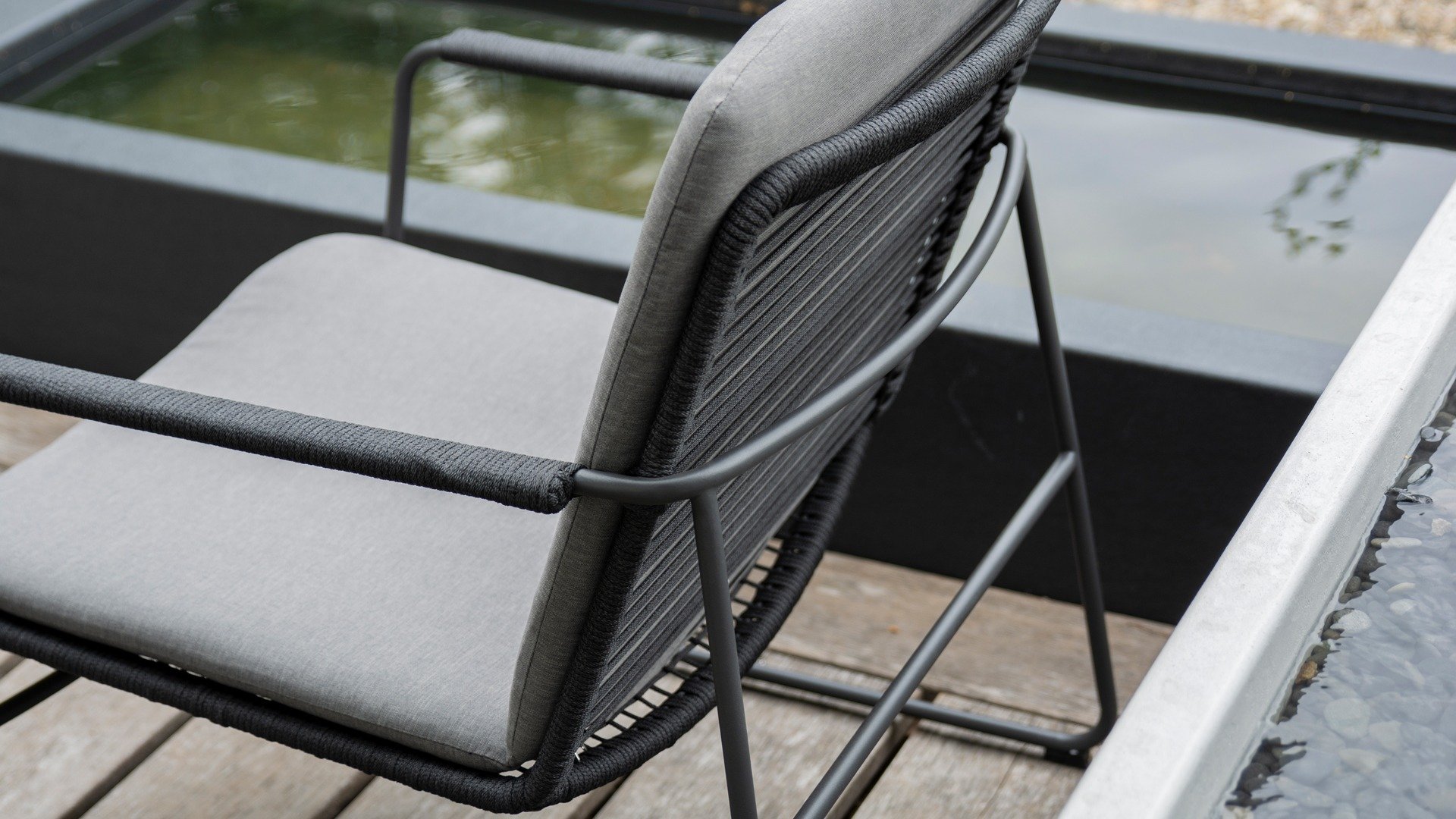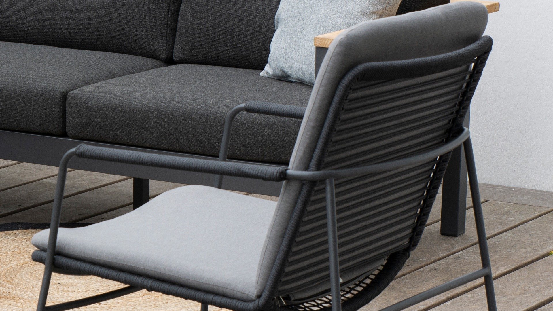 De Taste Elba loungeset heeft een moderne minimalistische uitstraling met een natural touch die zo kenmerkend is voor het Scandinavisch Design. De schoonheid zit hem in de details. Het frame van de Taste Elba Loungeset loopt strak en vloeiend in elkaar over en daar waar het vloeiende frame samenkomt wordt het afgewerkt met het strak omvlochten antraciet rope. Rug en zitting is gevlochten met dit sterke rope en geeft een stevige maar comfortabele zit. Het frame vormt een speels en minimalistisch samenspel van vloeiende lijnen die samenkomen en weer uit elkaar gaan... Een lust voor het oog!