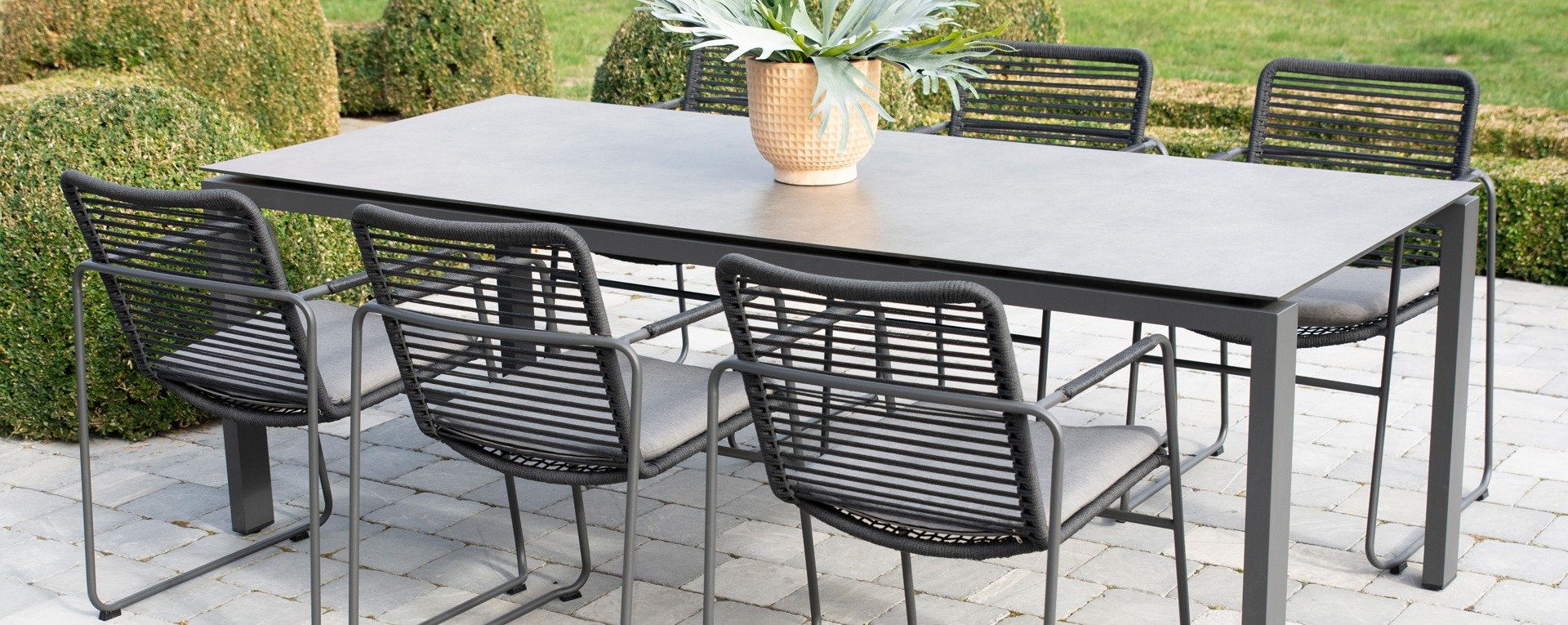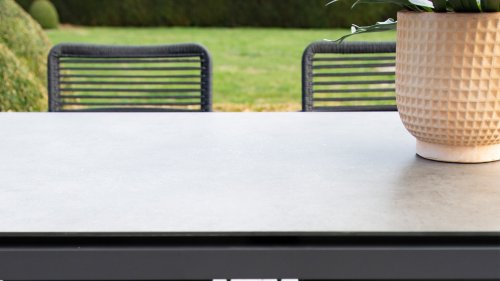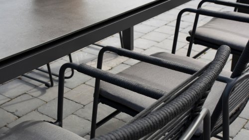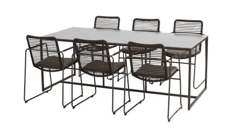 De Taste by 4 Seasons Elba tuinset heeft een moderne minimalistische uitstraling met een natural touch die zo kenmerkend is voor het Scandinavisch Design. De schoonheid zit hem in de details. Het frame van de Taste by 4 Seasons Elba diningset loopt strak en vloeiend in elkaar over en daar waar het vloeiende frame samenkomt wordt het afgewerkt met het strak omvlochten antraciet rope. Rug en zitting is gevlochten met dit sterke rope en geeft een stevige maar comfortabele zit. Het frame vormt een speels en minimalistisch samenspel van vloeiende lijnen die samenkomen en weer uit elkaar gaan... Een lust voor het oog!