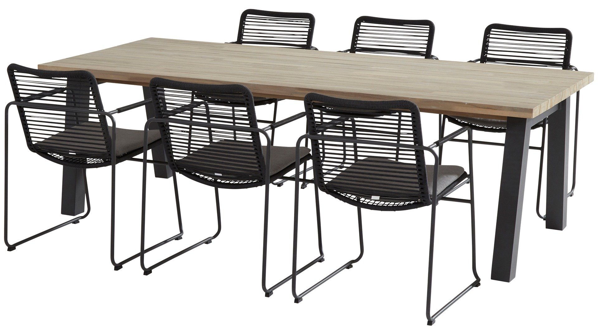 De sterke stof is bestand tegen een regenbui, uitritsbaar en wasbaar. Handig, maar let wel: de kussens zijn waterafstotend. Laat je ze lang in de regen liggen, dan kunnen ze alsnog nat worden aan de binnenkant.