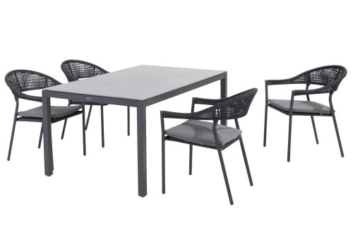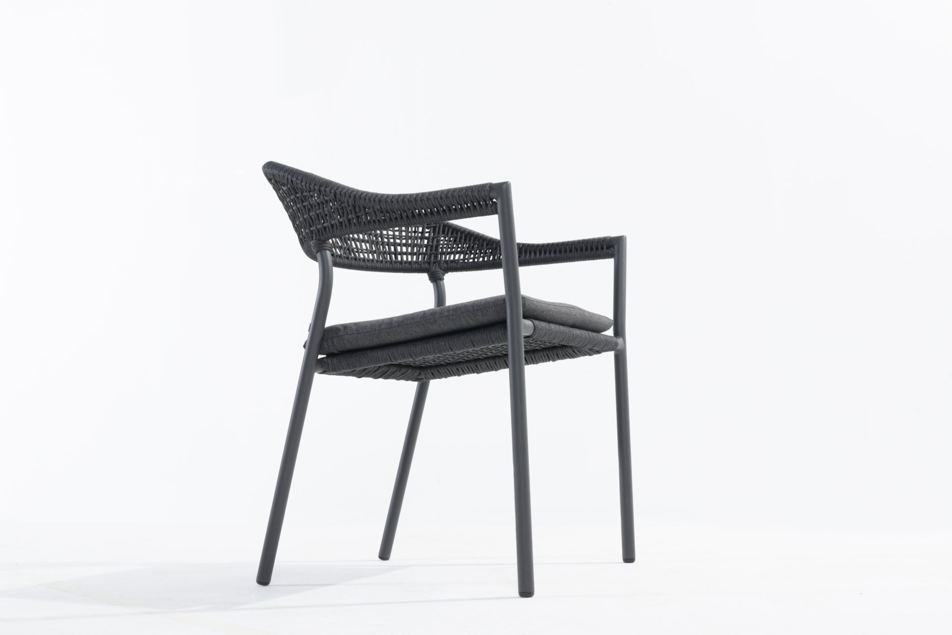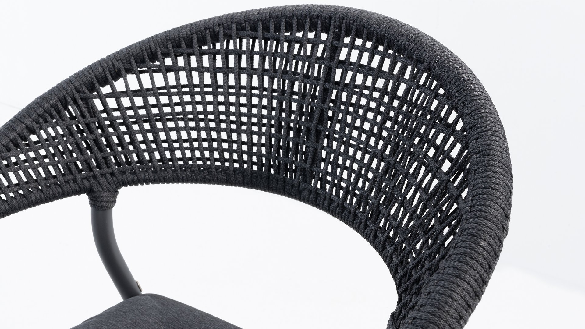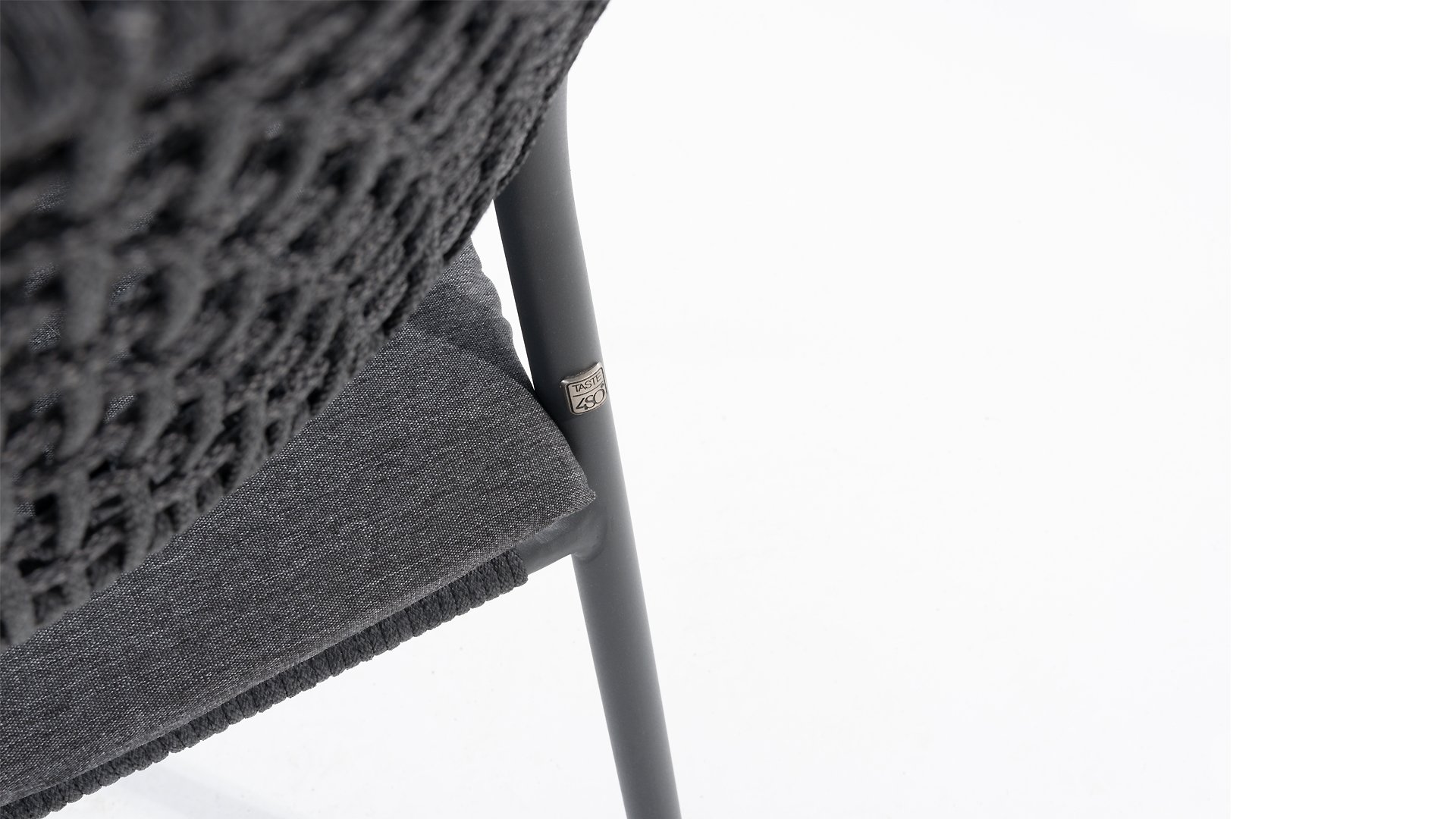De Taste by 4 Seasons Sienna tuinset heeft zijn eigen unieke stijl die compleet word gemaakt met het moderne rope! De schoonheid zit hem in de details. De rug van de Sienna dining serie van Taste by 4 Seasons is gevlochten uit rope en geeft een stevige maar comfortabele zit. Het frame vormt een speels en minimalistisch samenspel van vloeiende lijnen die een stevig geraamte vormen. Een lust voor het oog! De Sienna is in Matt Carbon aluminium te verkrijgen.
